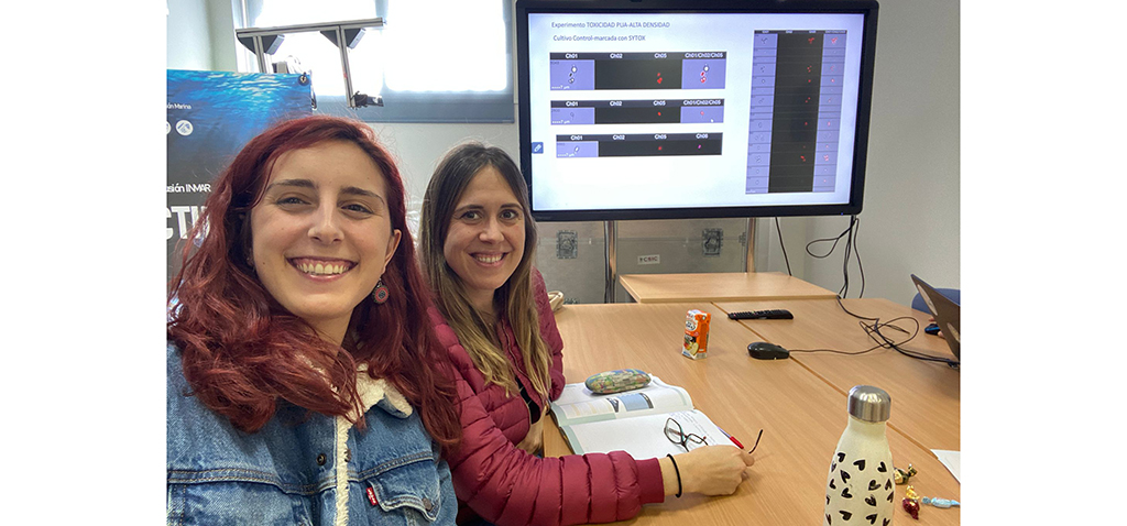 Las investigadoras Elisa Angulo y Mª Carmen Muñoz en dependencias del INMAR.