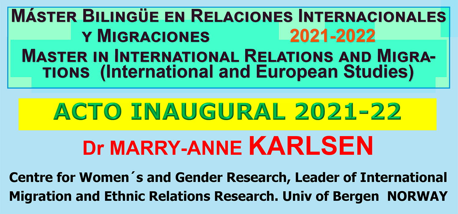 El próximo lunes 18 de octubre tiene lugar el acto de inauguración del nuevo curso 2021/2022 del Máster Bilingüe en Relaciones Internacionales y Migraciones / Master in International Relations and Migrations (International and European Studies) con  la Conferencia Inaugural: «The protection of refugees and migrants in an era of hardening borders»de la Dra. Marry-Anne Karlsen, investigadora […]