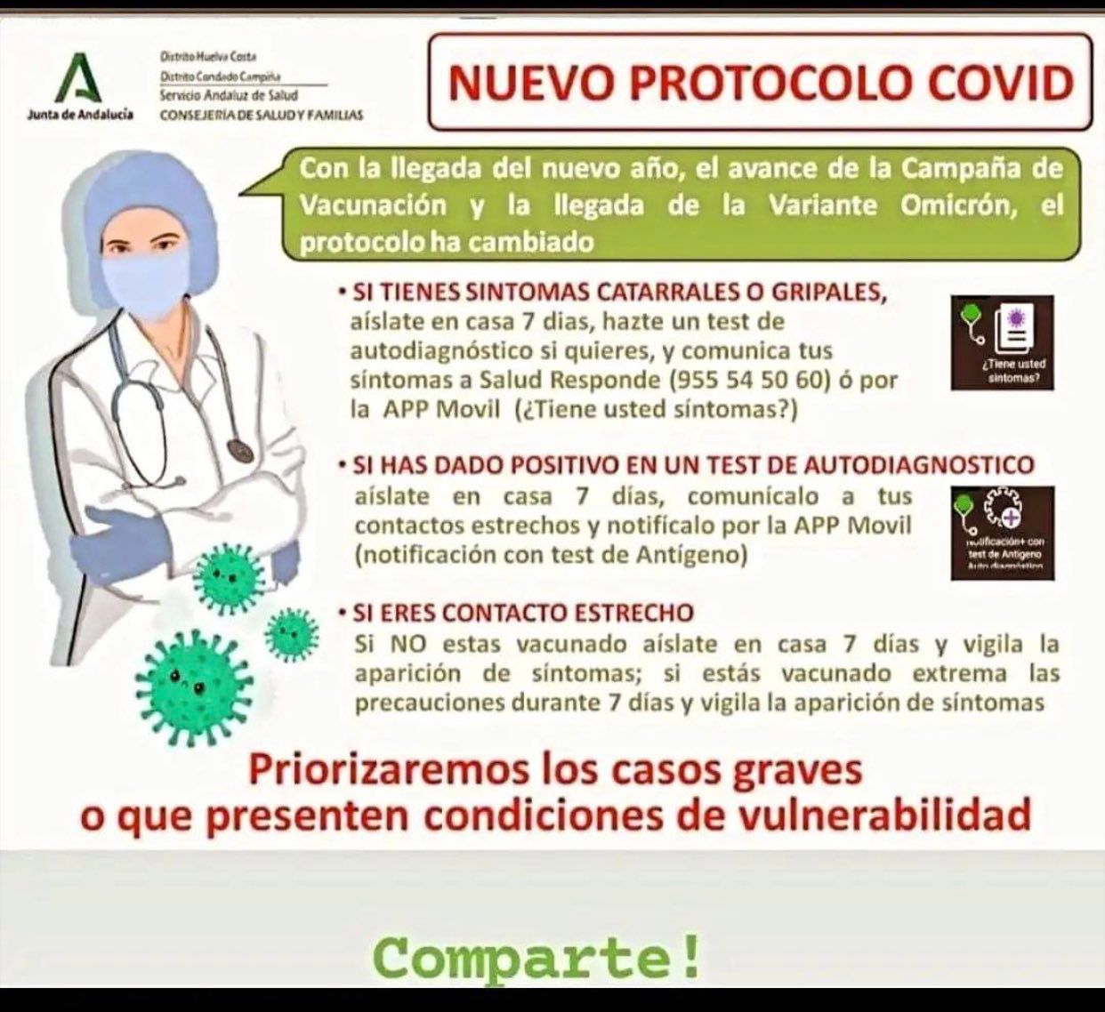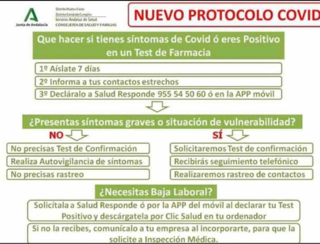 Nuevo protocolo COVID. Consejería de Salud y Familias de la Junta de Andalucía.
