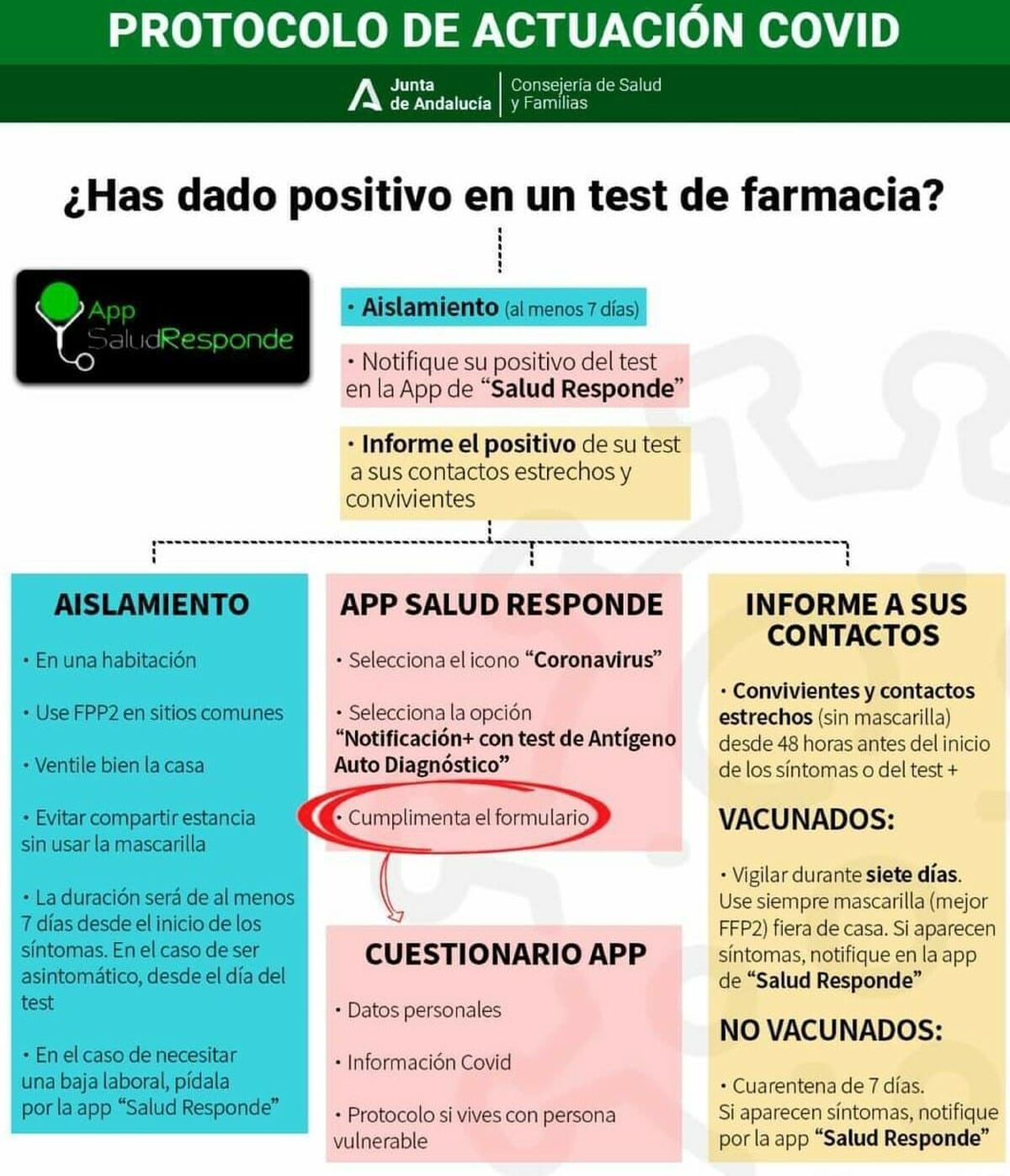 Protocolo de actuación para positivos COVID de la Junta de Andalucía.