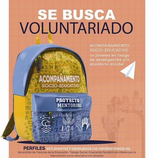 El voluntariado se realiza en el proyecto Mentorización inclusiva con jóvenes en proceso de desenganche y riesgo de abandono escolar que plantea una propuesta inclusiva de acompañamiento a jóvenes que con diversas circunstancias (pobre desempeño académico, trayectoria de absentismo, escolarización deficiente, acoso escolar, falta de apoyo familiar, etc.) se encuentran inmersos en procesos de desencuentro, desafección y desenganche con la escuela, que pueden conducir al fracaso escolar (abandono del sistema escolar sin haber titulado) o al abandono escolar (no continuar estudios postobligatorios, que les permitan formarse profesionalmente o continuar estudios).