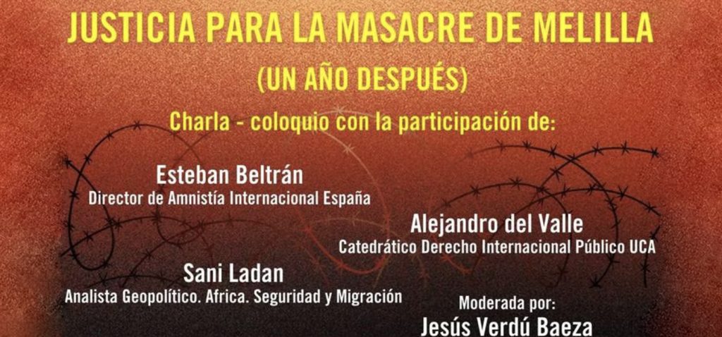A las 19:00 horas en el Salón de Grados de la ETSIA, tendrá lugar la actividad Justicia para la masacre de Melilla. Un año después, organizada por el Área de Derecho Internacional Público de la UCA y Amnistía Internacional.