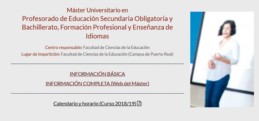 El salón de Actos de la Facultad de Ciencias de la Universidad de Cádiz acogerá el próximo lunes 29, a las 17 horas, la sesión de inauguración del máster universitario en Profesorado de Educación Secundaria Obligatoria y Bachillerato, Formación Profesional y Enseñanza de Idiomas.