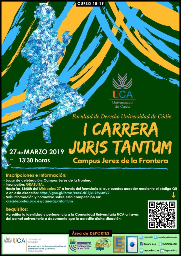 La I Carrera Juris Tantum está organizada por la Facultad de Derecho con la colaboración del Área de Deportes de la Universidad de Cádiz.