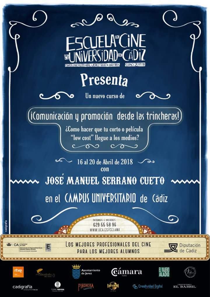 El objetivo de este módulo de la Escuela de Cine es perfeccionar y dotar de habilidades para promocionar una obra audiovisual de bajo presupuesto, ya sea corto o de largometraje que ni disponga de departamento de prensa. Conocer el medio, analizar los contenidos y afinar la comunicación. Se entregará material (bibliografía, documentación, etc)