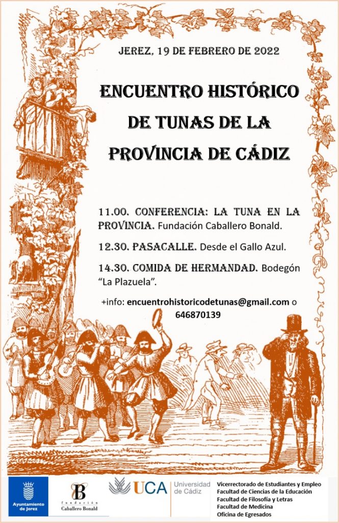 El próximo día 19 de febrero, se va a celebrar en Jerez, en la sede de la Fundación Caballero Bonald, un Encuentro Histórico de tunas de la provincia de Cádiz.