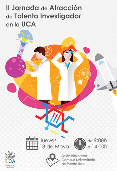 La II Jornada de atracción de Talento Investigador en la UCA tendrá lugar el próximo jueves 17 de Mayo en el salón de la Biblioteca del Campus Universitario de Puerto Real de 9:00h a 13:30h.