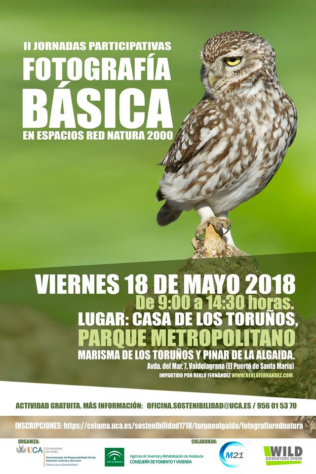 Esta jornada participativa denominada “Fotografía básica en espacios de la Red Natura 2000” se enmarca dentro del espacio de colaboración creado para el presente curso académico entre el Parque Metropolitano Marisma de los Toruños y Pinar de la Algaida y la Oficina para la Sostenibilidad de la Universidad de Cádiz.