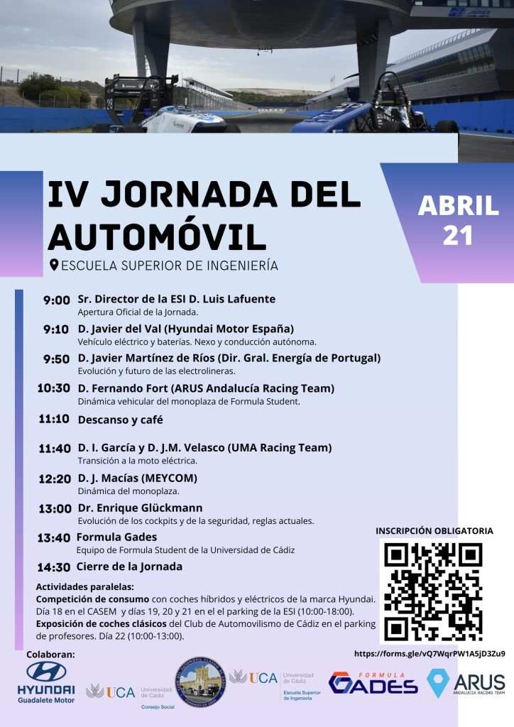 La Escuela Superior de Ingeniería de Puerto Real celebra el viernes 21 la IV Jornada del Automóvil.