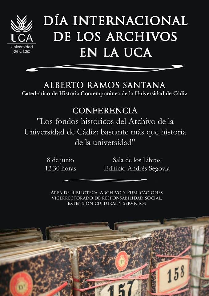 Conferencia: por el Catedrático de Historia Contemporánea Universidad de Cádiz, Alberto Ramos Santana, “Los fondos históricos del archivo de la UCA: bastante más que historia de la universidad”