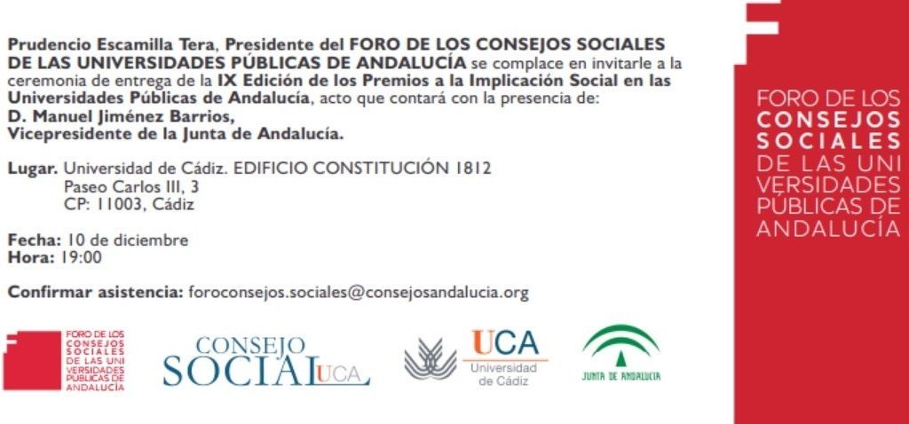 Ceremonia de entrega de la IX Edición de los Premios a la Implicación Social en las Universidades Públicas de Andalucía.