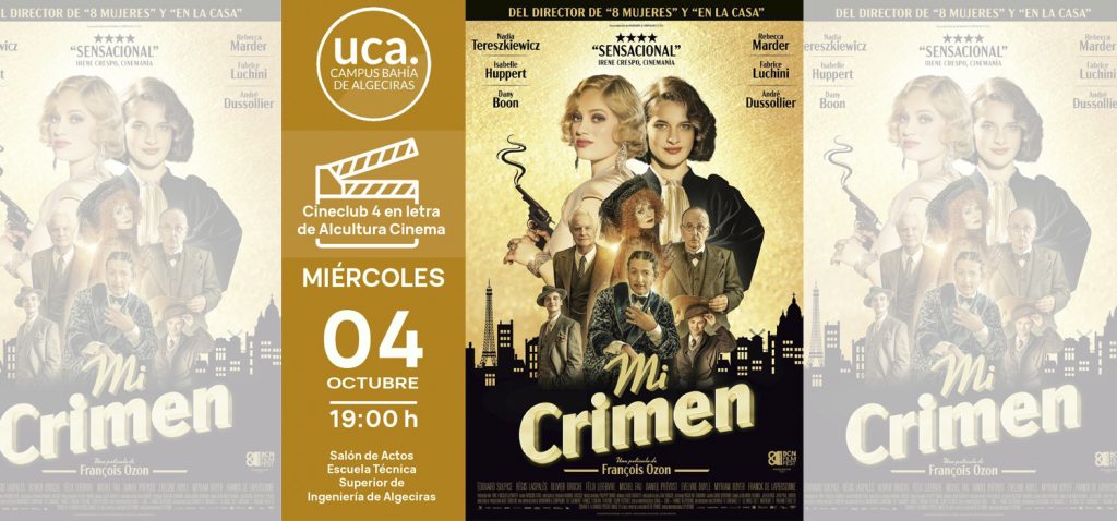 El salón de actos de la Escuela Técnica Superior de Ingeniería de Algeciras alberga la proyección de la película francesa Mi crimen (2023) de François Ozon.