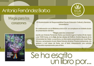 Dentro del programa “Se ha escrito un libro por…”, el próximo martes 20 de marzo se presenta la obra de la gaditana Antonia Fernández Barba, “Magia para los corazones”.