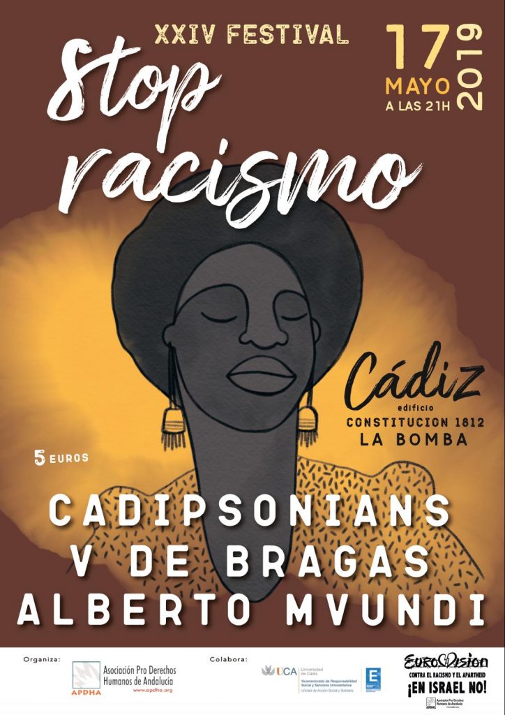 El próximo 17 de mayo tendrá lugar el festival #StopRacismo, organizado por APDHA Cádiz. Actuarán Cadipsonians, V de Bragas y Alberto Mvundi.