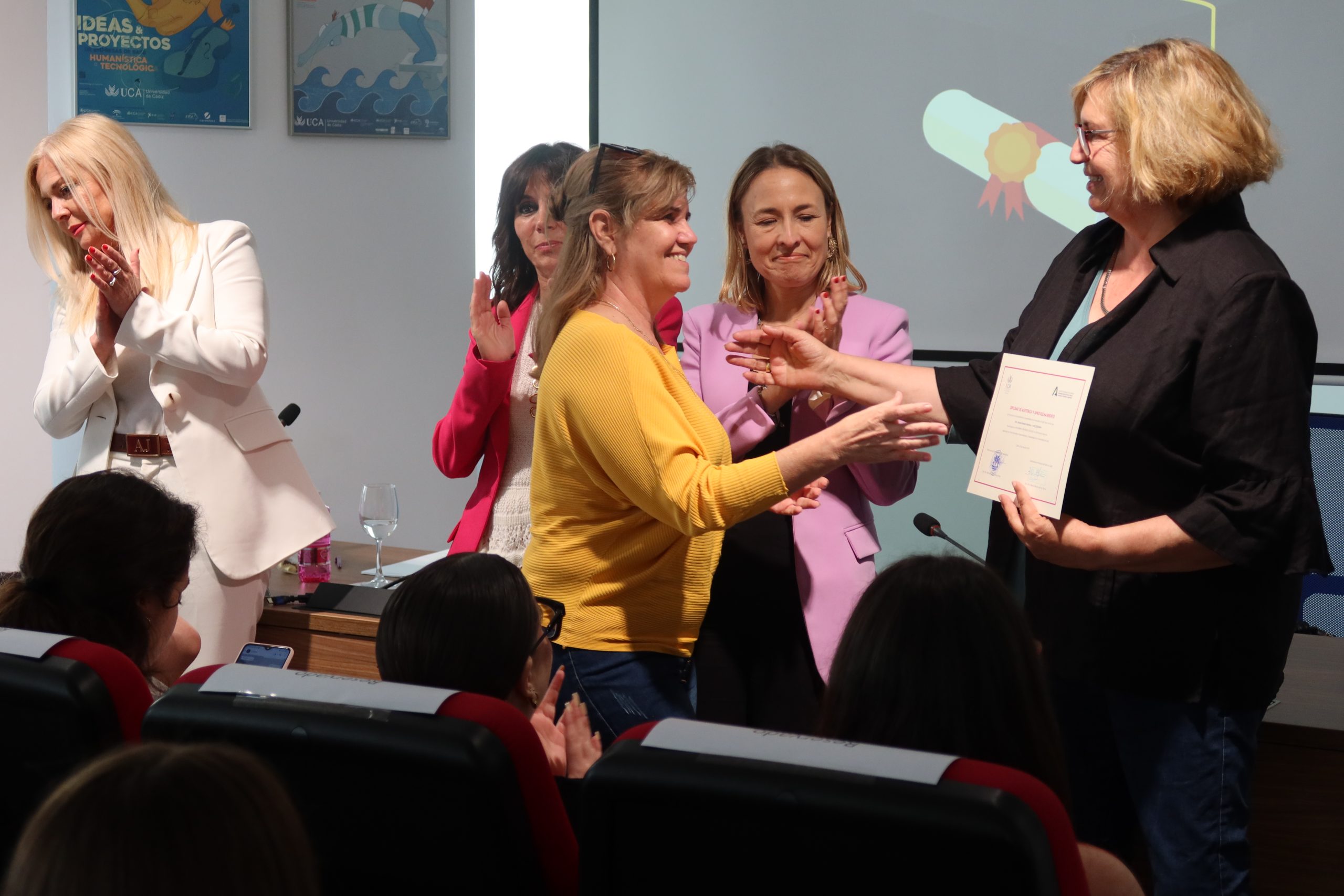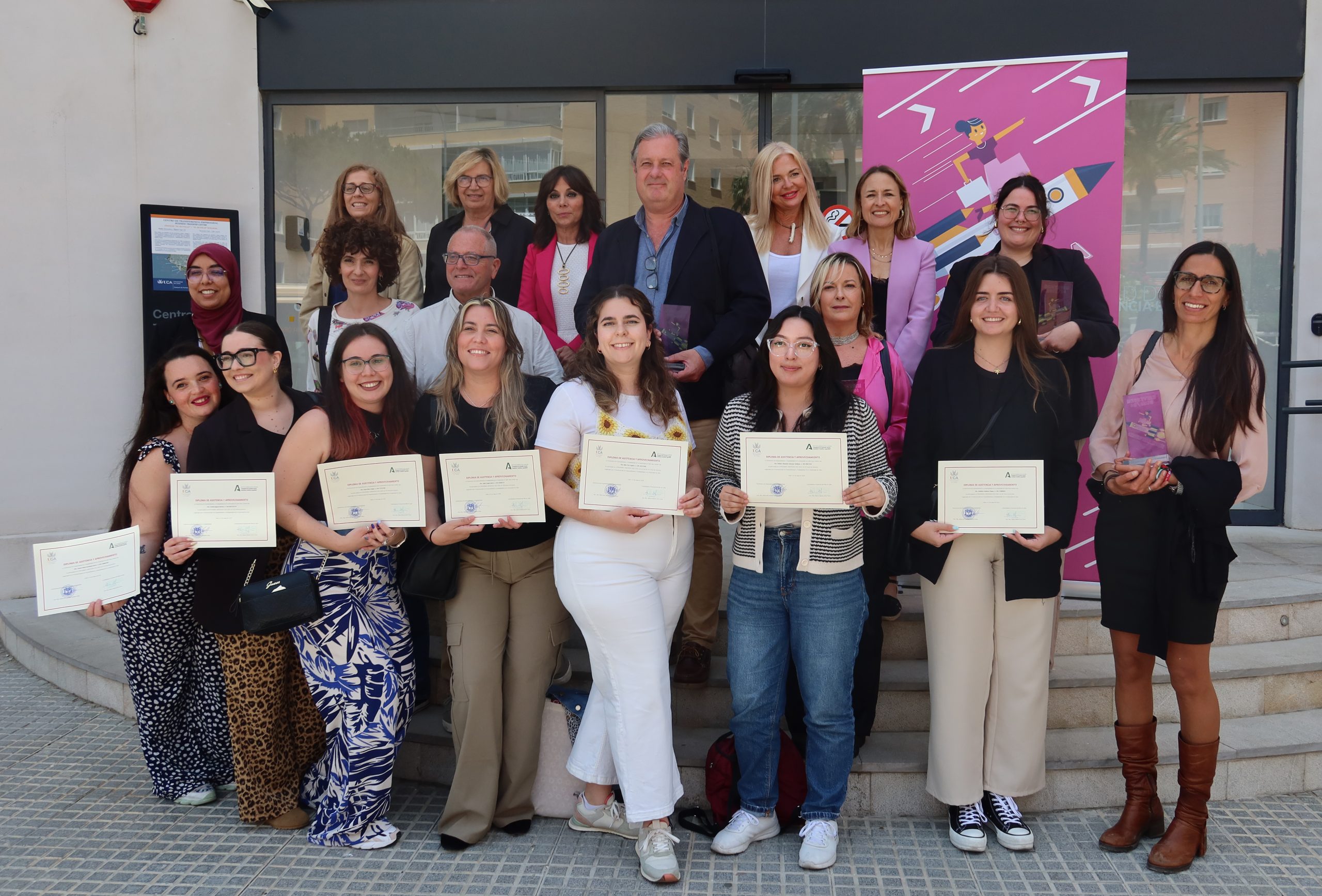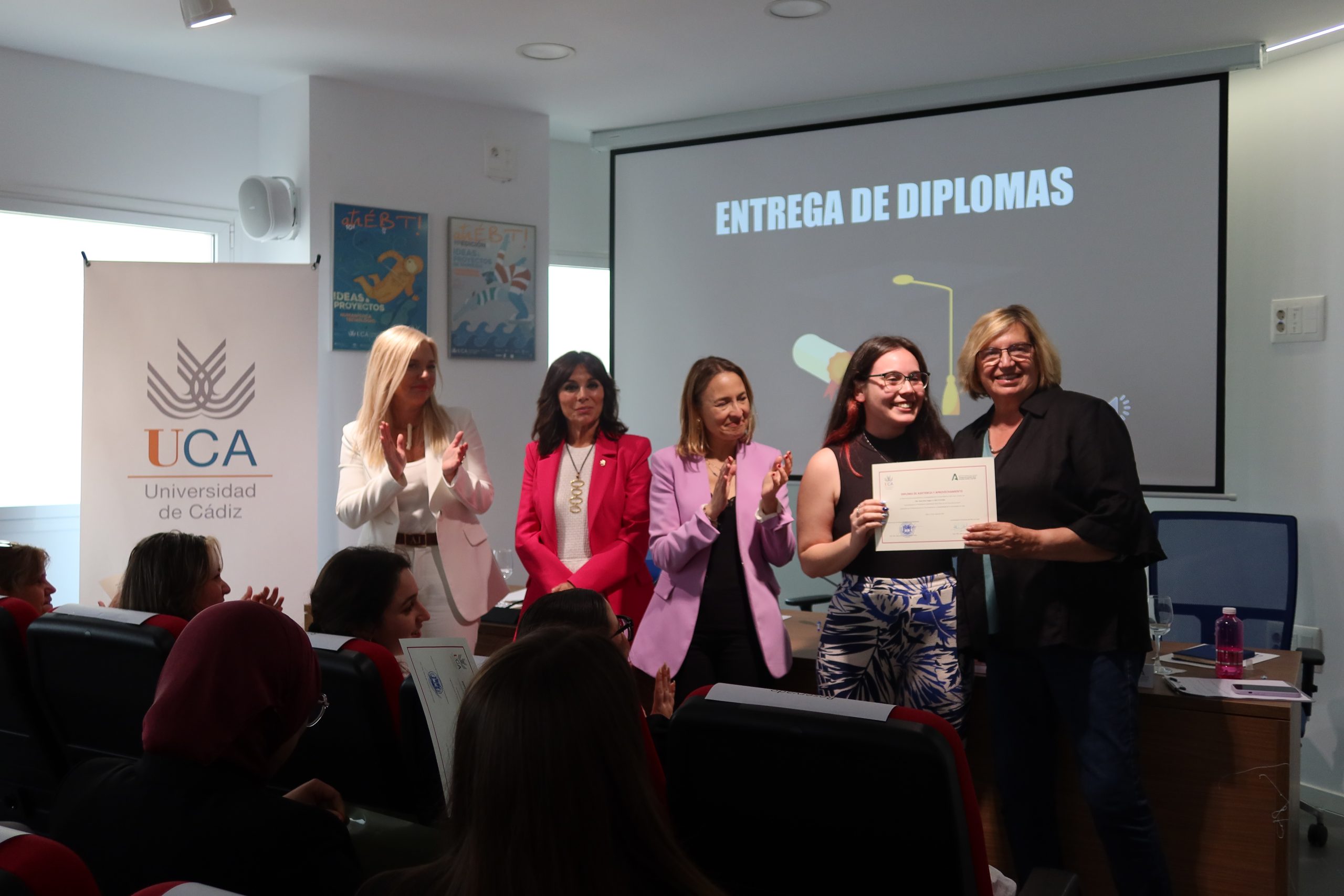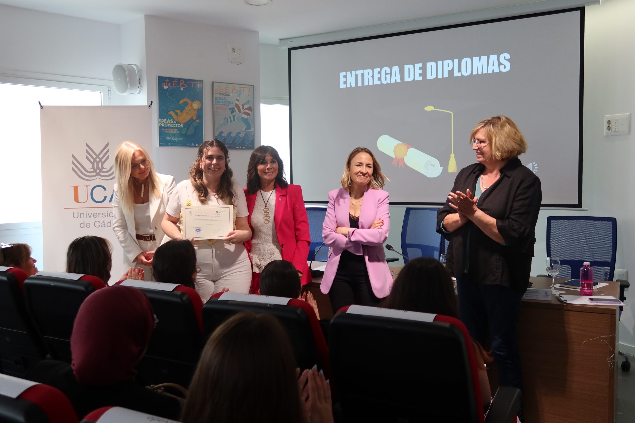 Carmen Camelo les ha dado la enhorabuena por haber protagonizado esta experiencia de aprendizaje en la UCA, “dando un salto importante a su inserción en el mercado laboral”, que no ha podido finalizar de mejor manera “ya que el 50% de las participantes no han podido venir a recoger su diploma porque se encuentran ahora trabajando con un contrato laboral o le han renovado las prácticas en las empresas” y ha agradecido a las empresas colaboradoras por aportar su “granito de arena para que puedan acceder a la empleabilidad” y a la Junta de Andalucía por convocarlo y financiarlo. Ha subrayado que la Universidad de Cádiz seguirá impulsando este tipo de programas porque aún es necesario “combatir la brecha de género del mercado laboral español, puesto que todavía hay una mayor tasa de desempleo femenina, menor tasa de ocupación, salarios más bajos, más dificultades de acceso a puestos directivos…”.