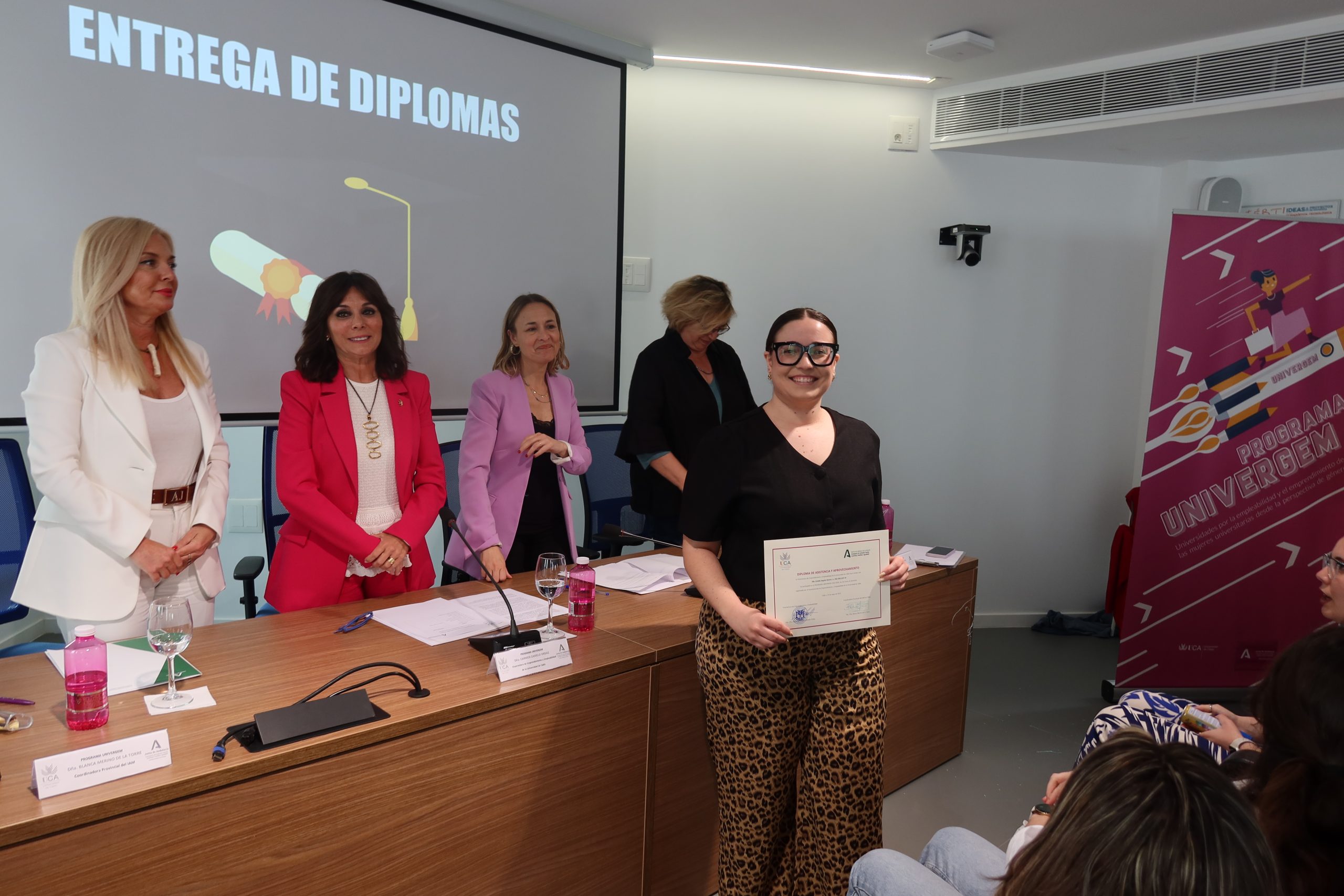 Blanca Merino ha felicitado a las alumnas y las empresas y a la Universidad “porque vemos los resultados”. En concreto, ha afirmado que la Universidad de Cádiz ha demostrado “su apuesta firme por la empleabilidad y el emprendimiento de las mujeres universitarias de aquí nuestra unión perfecta en este programa”. Univergem pretende impulsar de una forma más eficaz la igualdad en las universidades en el mundo laboral: “sabemos que la incorporación de la mujer al trabajo ha evolucionado positivamente pero también conocemos que sigue habiendo numerosos estereotipos que dificultan que accedan a puestos directivos y de responsabilidad independientemente de la formación que tengan y que hayan demostrado”.