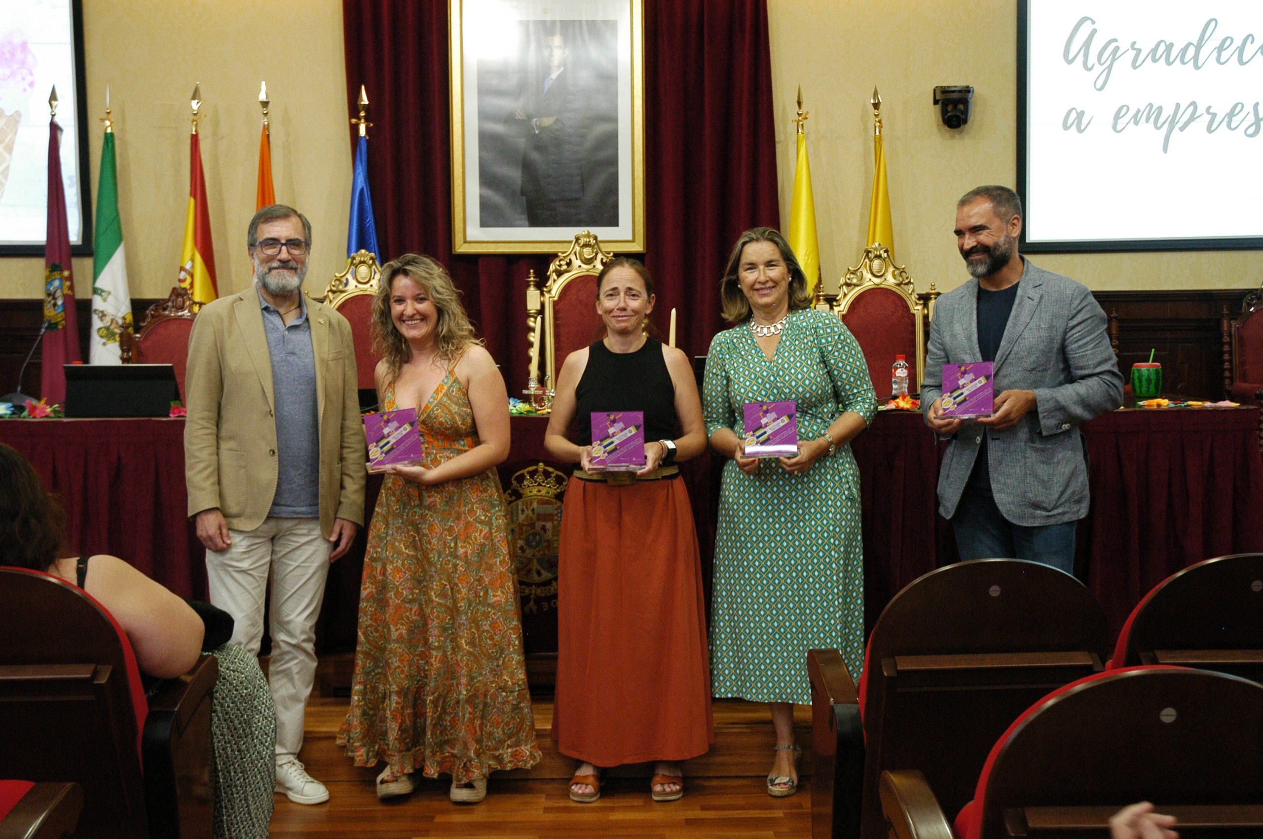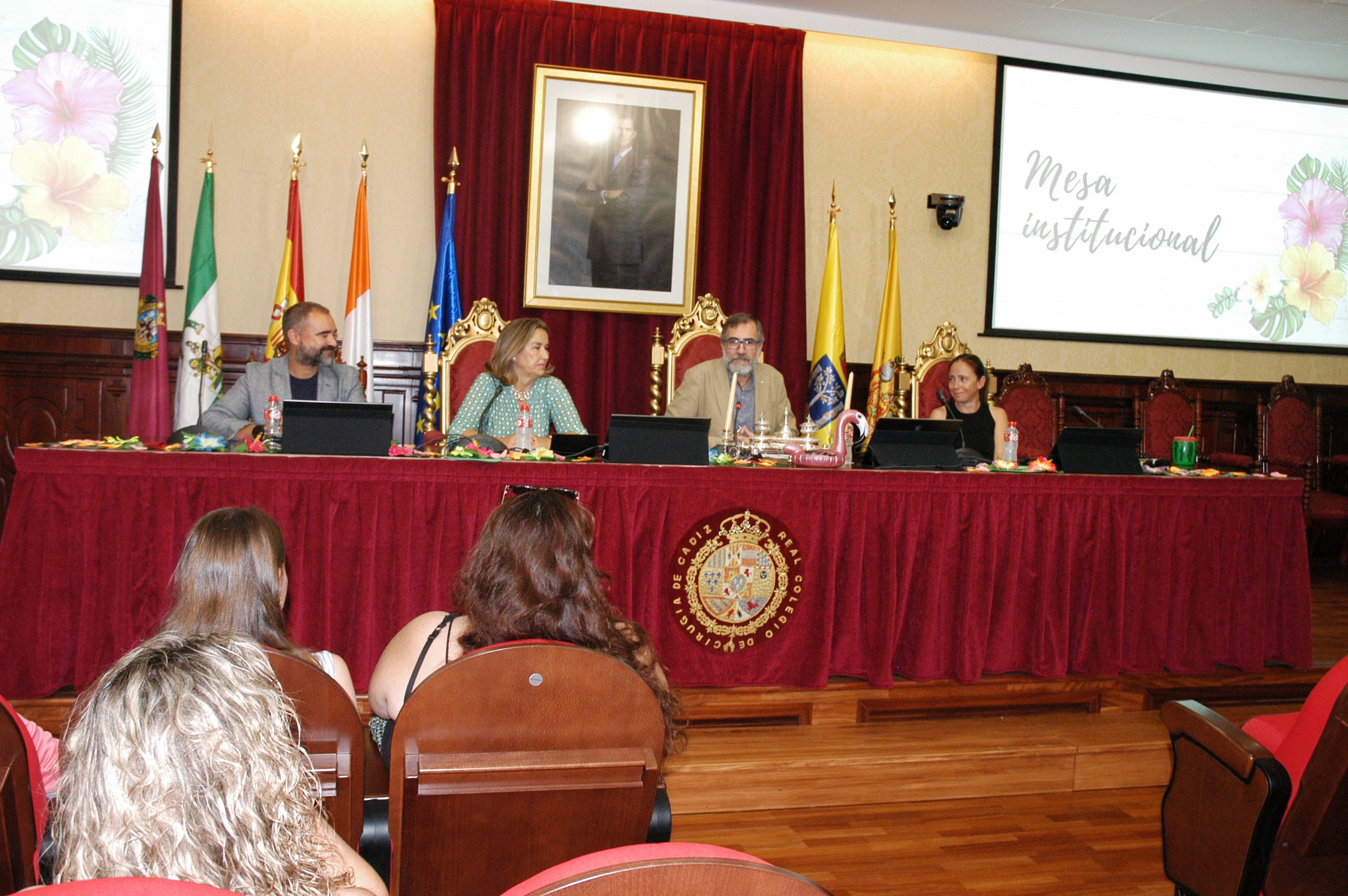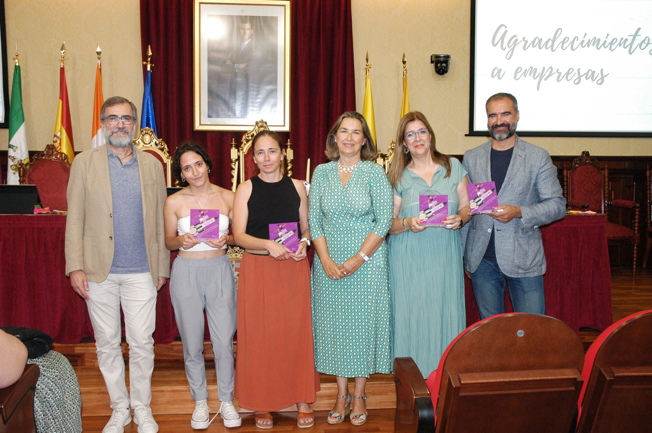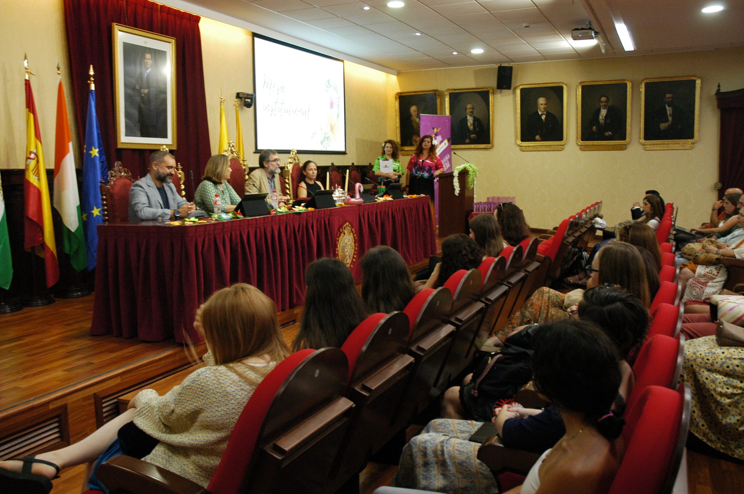 El vicerrector de Estudiantes y Empleo de la UCA, Manuel Sánchez, en compañía de la asesora de Programas del IAM en Cádiz, Celia Mañueco, la delegada del Rector para las Políticas de Igualdad e Inclusión de la UCA, Maika García, y el director del Centro de Promoción de Empleo y Prácticas de la UCA, Luis López, han presidido hoy el acto, conducido por Cadigenia, de entrega de los certificados de aprovechamiento a sus participantes, así como de las placas conmemorativas a las empresas/entidades participantes.
