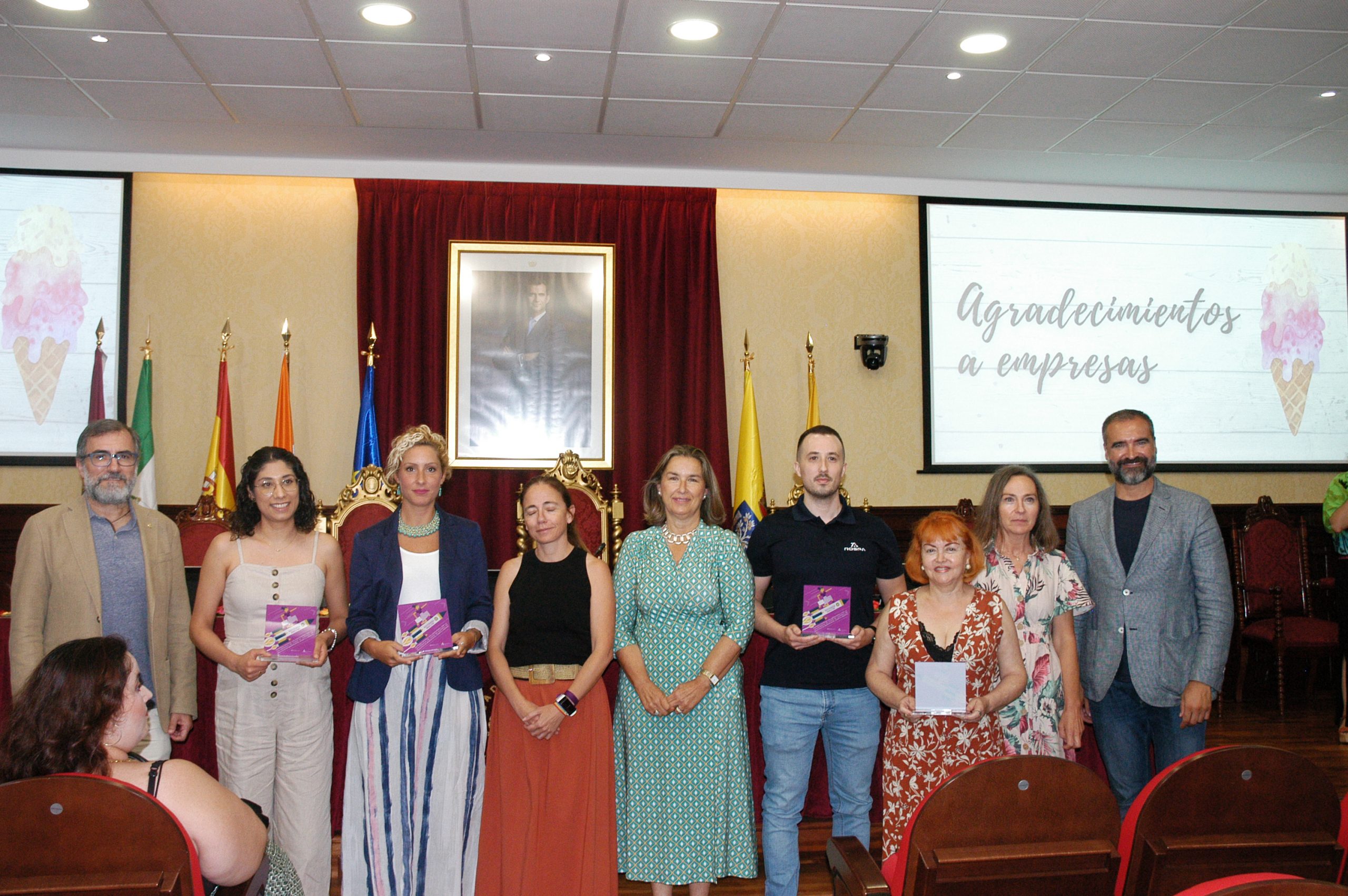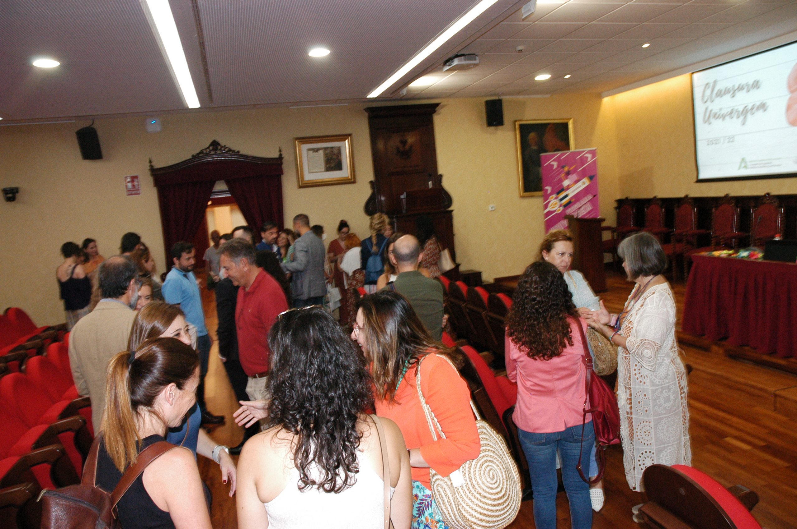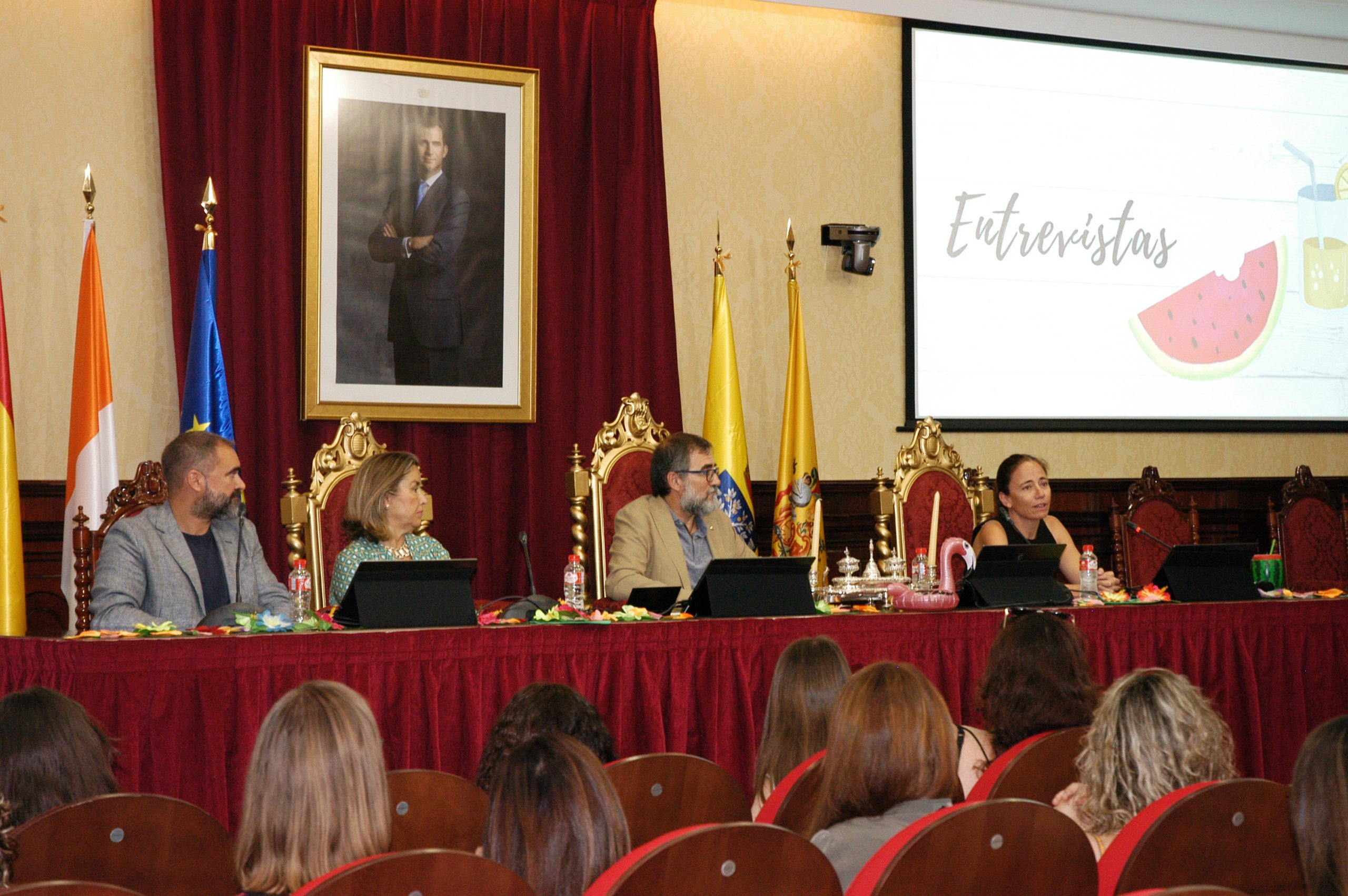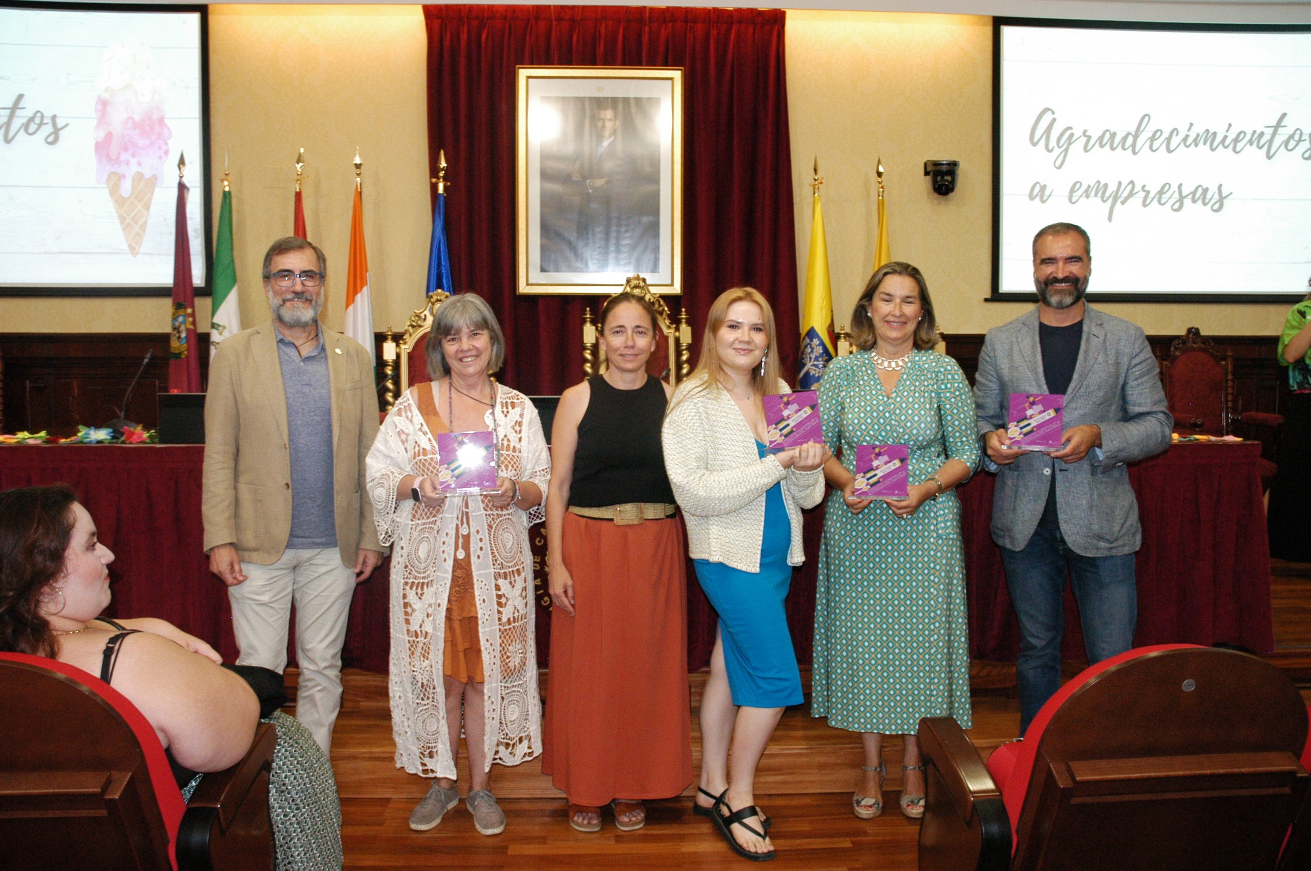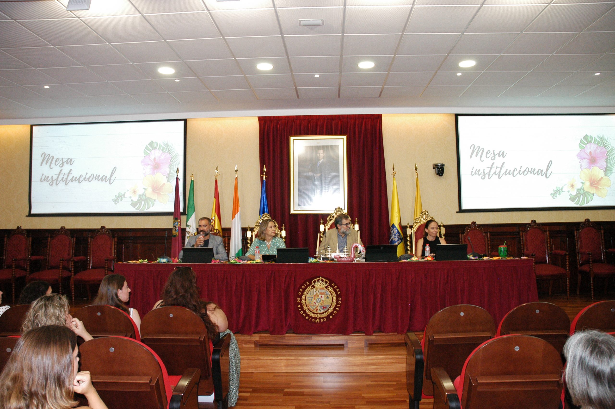 El vicerrector de Estudiantes y Empleo de la UCA, Manuel Sánchez, en compañía de la asesora de Programas del IAM en Cádiz, Celia Mañueco, la delegada del Rector para las Políticas de Igualdad e Inclusión de la UCA, Maika García, y el director del Centro de Promoción de Empleo y Prácticas de la UCA, Luis López, han presidido hoy el acto, conducido por Cadigenia, de entrega de los certificados de aprovechamiento a sus participantes, así como de las placas conmemorativas a las empresas/entidades participantes.
