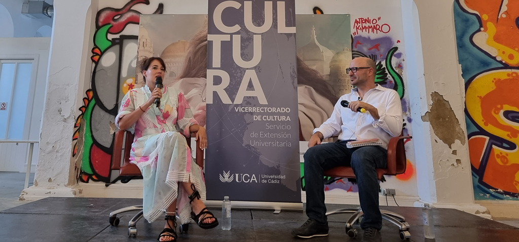Y, en el marco de la 38º Feria del Libro de Cádiz, el ciclo de las Presencias Literarias en la Universidad de Cádiz se trasladó al Baluarte de la Candelaria de Cádiz para recibir a la escritora y profesora Marina Perezagua, quien diálogo con el periodista y director de la Feria Alejandro Luque.
