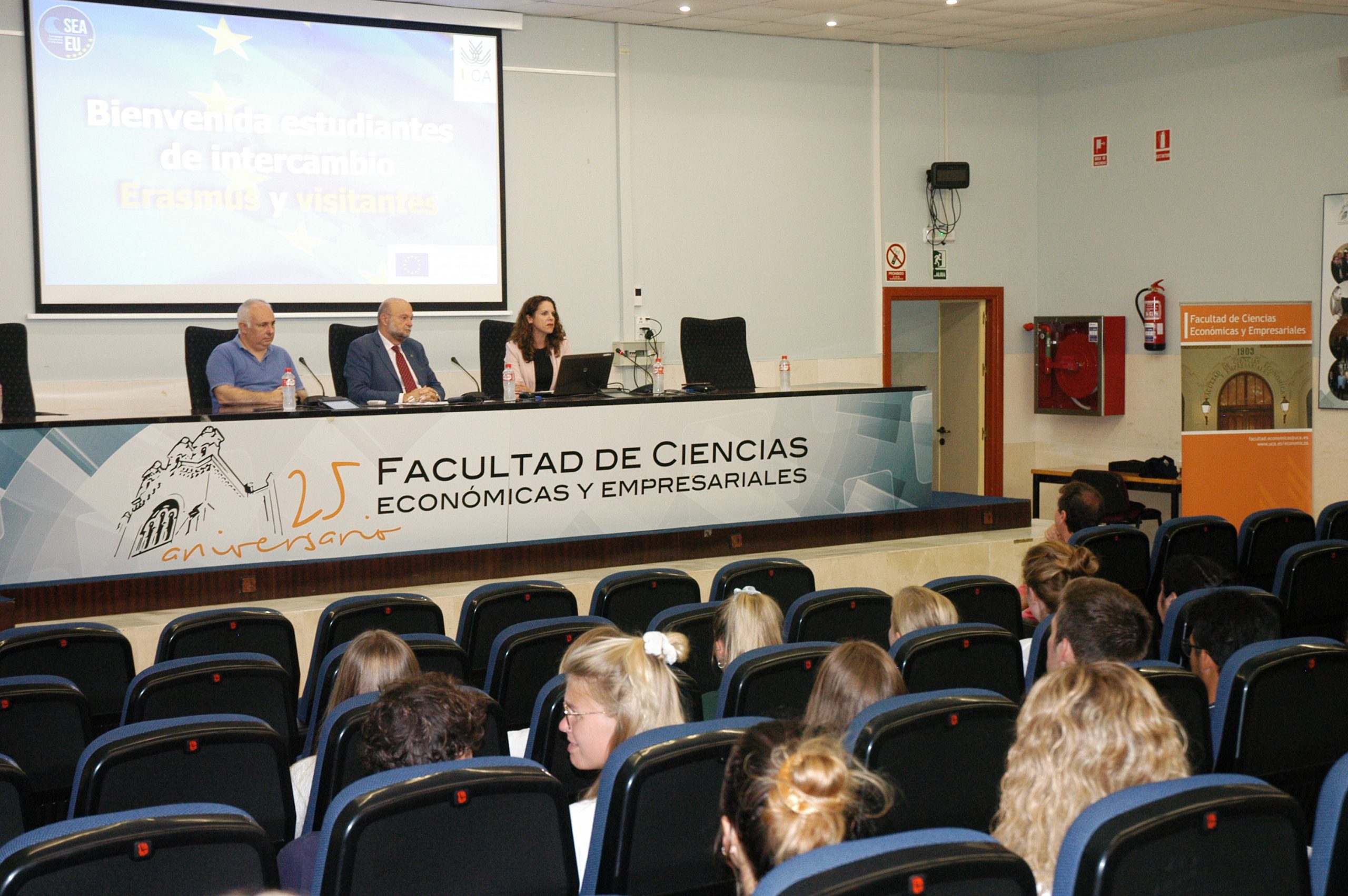 Las facultades de Filosofía y Letras y Ciencias Económicas y Empresariales han acogido hoy los actos de mayor recepción. El vicerrector de Internacionalización de la UCA, Rafael Jiménez Castañeda, les ha dado la bienvenida en compañía del director de la secretaría de Movilidad Internacional, Néstor Mora, y los vicedecanos de Relaciones Internacionales de sendos centros académicos, Candela Contero y Rafael Vélez, respectivamente.