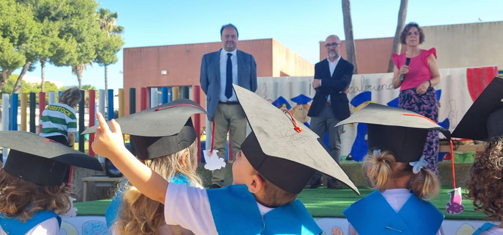 El Campus de Puerto Real de la Universidad de Cádiz ha acogido esta mañana el acto de graduación de la Escuela Infantil La Algaida 2024. Al mismo, han acudido el rector, Casimiro Mantell, el vicerrector de Sostenibilidad y Cultura, Gonzalo Sánchez, la directora de la Escuela, Inmaculada Rosillo, y la tutora Isabel Aiza.