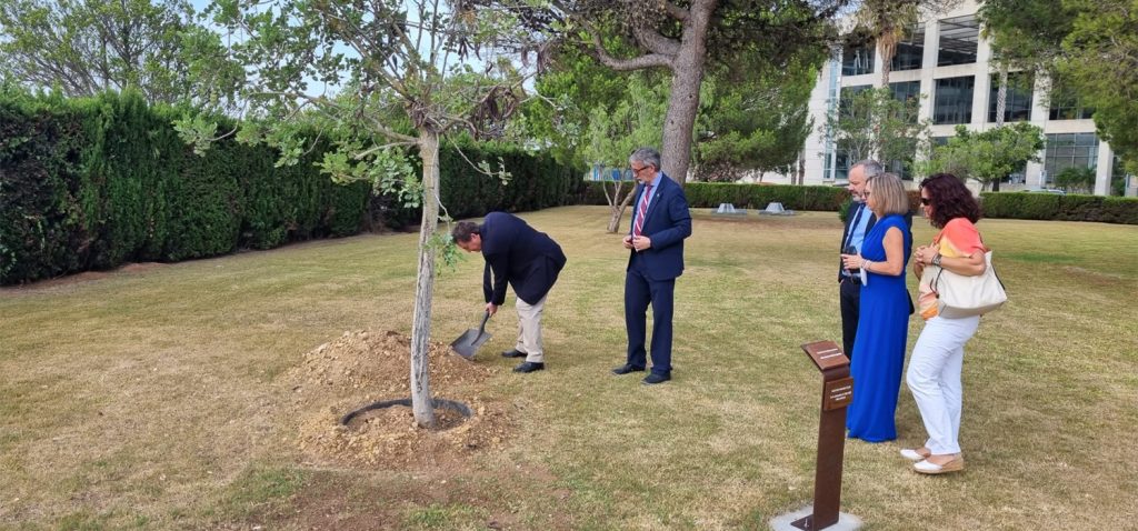 Los árboles presentes en este Bosque Honoris Causa son muy representativos del ecosistema propio del entorno biogeográfico de la zona, donde el pino piñonero y los acebuches presentes ponen en valor espacios pendientes de aprovechamiento que, además de mejorar la calidad ambiental del campus universitario, sirven como receptores de gases de efecto invernaderos, contribuyendo a frenar el Cambio Climático y por ende a la consecución del ODS 13 de Naciones Unidas “Acción por el Clima”. En este último caso, se ha plantado un algarrobo en memoria de Almudena Grandes.