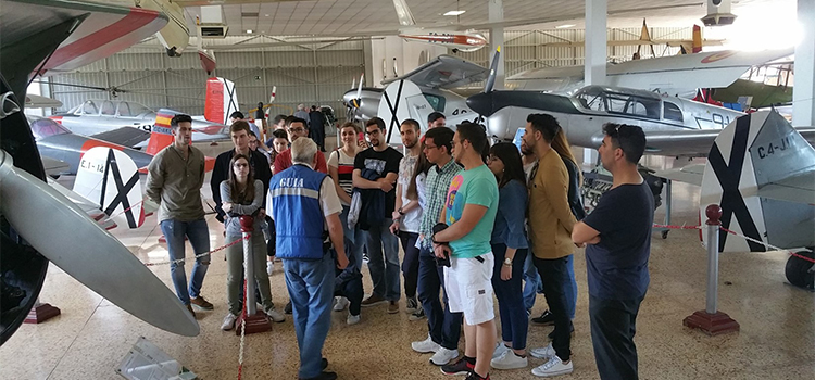 Un grupo de alumnas y alumnos de último curso y profesorado del grado en Ingeniería Aeroespacial de la Escuela Superior de Ingeniería han realizado una visita formativa al Museo de la Aeronáutica y la Astronáutica, ubicado en el aeródromo de Cuatro Vientos en Madrid.