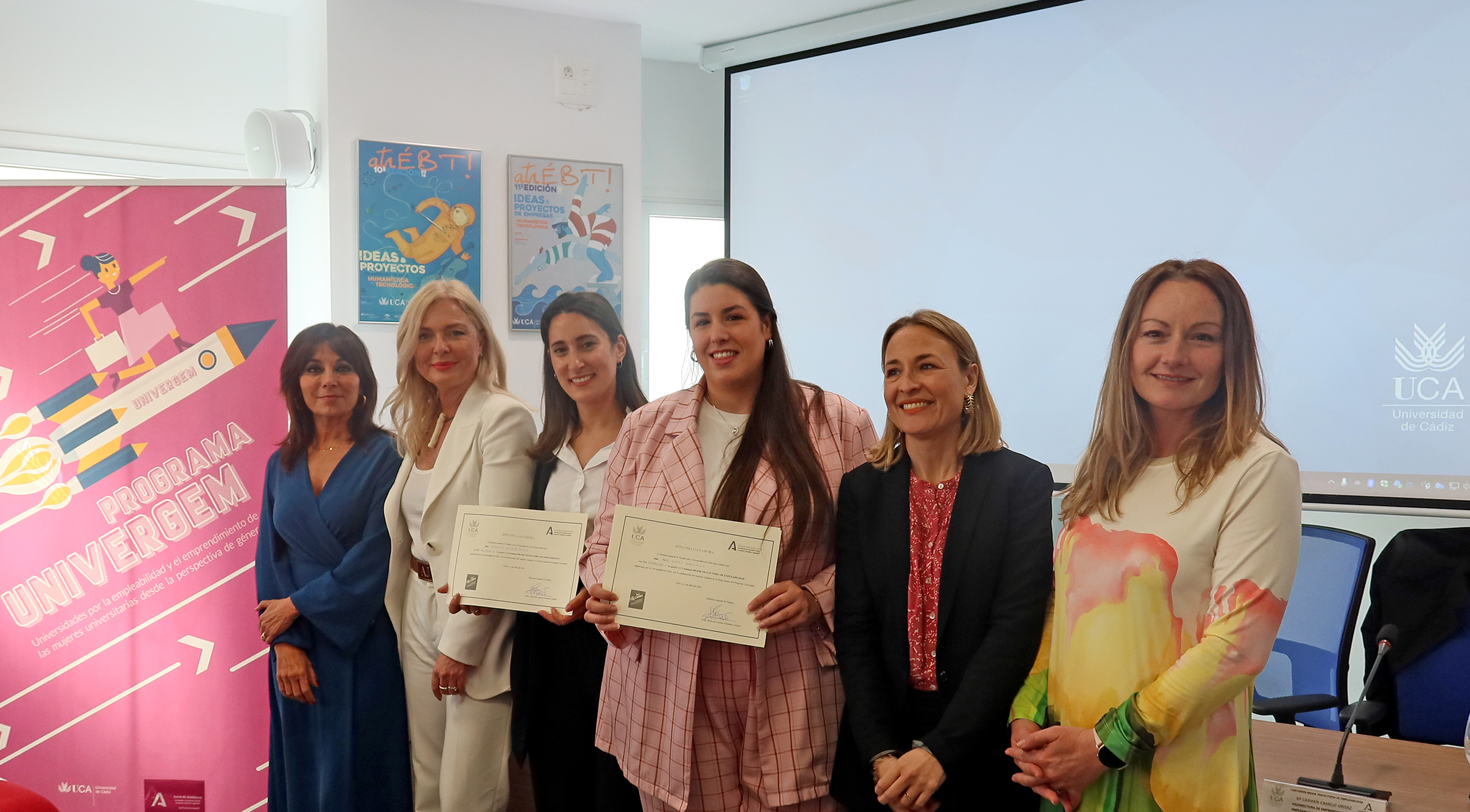 La Universidad de Cádiz, desde el Vicerrectorado de Emprendimiento y Empleabilidad, organiza con el apoyo del Instituto Andaluz de la Mujer el I Certamen a la Mejor Trayectoria de Empleabilidad del programa Univergem. Ana Gómez González y Virginia Gómez Pérez han ganado esta primera edición que reconoce el trabajo de dos antiguas alumnas como referentes de este programa en las tres ediciones anteriores y que servirán de inspiración para las próximas convocatorias.