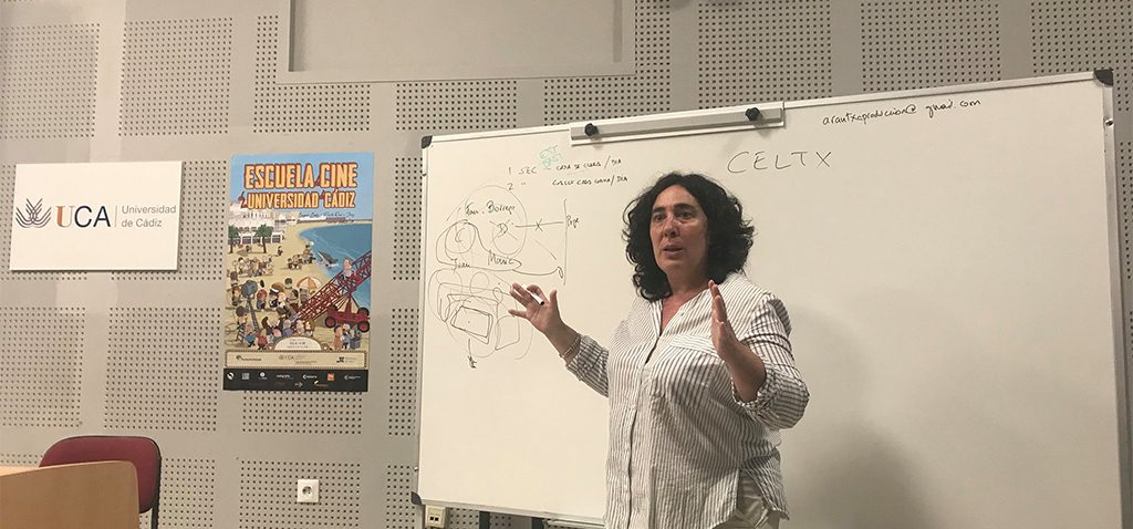 La Escuela de Cine de la Universidad de Cádiz (CELAMA) organiza estos días el curso De Bilbao a Cannes con la directora de cine Arantxa Echevarría que trata de guion, producción y dirección de cine, promovido por el Vicerrectorado de Responsabilidad Social, Extensión Cultural y Servicios.