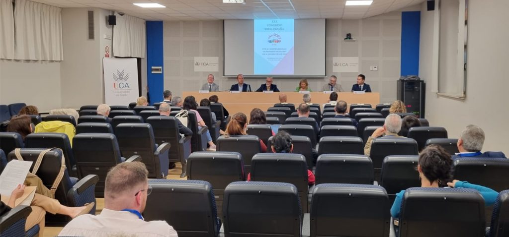 La Facultad de Ciencias Económicas y Empresariales de la Universidad de Cádiz organiza desde hoy el XXX Congreso Nacional de EBEN (Asociación Española de Ética de la Economía y de las Organizaciones) en el edificio Constitución 1812, que en 2023 trata sobre Ética y sostenibilidad, un binomio necesario en el logro de los Objetivos de Desarrollo Sostenible (ODS). El delegado del Rector para el Plan Estratégico de la Universidad de Cádiz, Manuel Larrán, junto a los delegados territoriales de Sostenibilidad, Medio Ambiente y Economía Azul y de Desarrollo Educativo y Formación Profesional y de Universidad, Investigación e Innovación de la Junta de Andalucía en Cádiz, Óscar Curtido y Mª Isabel Paredes, respectivamente, el decano de dicha Facultad, Pedro Araújo, el presidente de EBEN, José Luis Retolaza, y el coordinador del Congreso, Jesús Barrena, han dado la bienvenida al más de un centenar de inscritos procedentes de una veintena de universidades en el Campus de Cádiz.