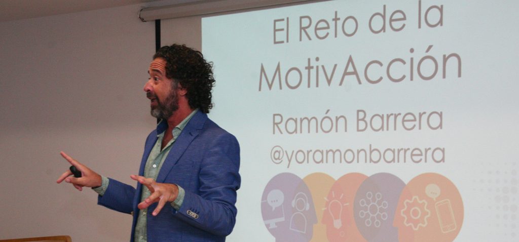 Ramón Barrera Morales, experto en Formación y Comunicación, ha ofrecido la conferencia inaugural titulada El Reto de la MotivAcción. Su intervención se ha basado en el desarrollo de 10 conceptos que considera imprescindibles para avanzar en el aprendizaje: El Profesional, el Propósito el Protagonista, la Proactividad, el Probar, la Productividad, el Proyecto, la Protesta, la Propuesta y el Progreso. Entre sus afirmaciones, resaltan que la motivación hay que fomentarla y practicarla en los dos roles de la comunicación formativa, es decir, tanto en el profesorado como en el alumnado, con el trabajo desde el vínculo del “saber, poder, querer y deber”, con una ilusión y ganas de sorprender en todos los momentos de la docencia. Ha animado a “provocar y empujar al alumnado”, tomando como referencia la educación como algo vital en la evolución humana, en el que se participa. “Menos Aprobar y más a probar”, en sus palabras, o lo que es lo mismo: “encontrar sentido a lo que hacemos y no obsesionarse con el propósito”. Finalmente, Ramón Barrera ha propuesto una fórmula de la motivación que combina el valor con tener una expectativa y la dimensión afectiva y emocional.