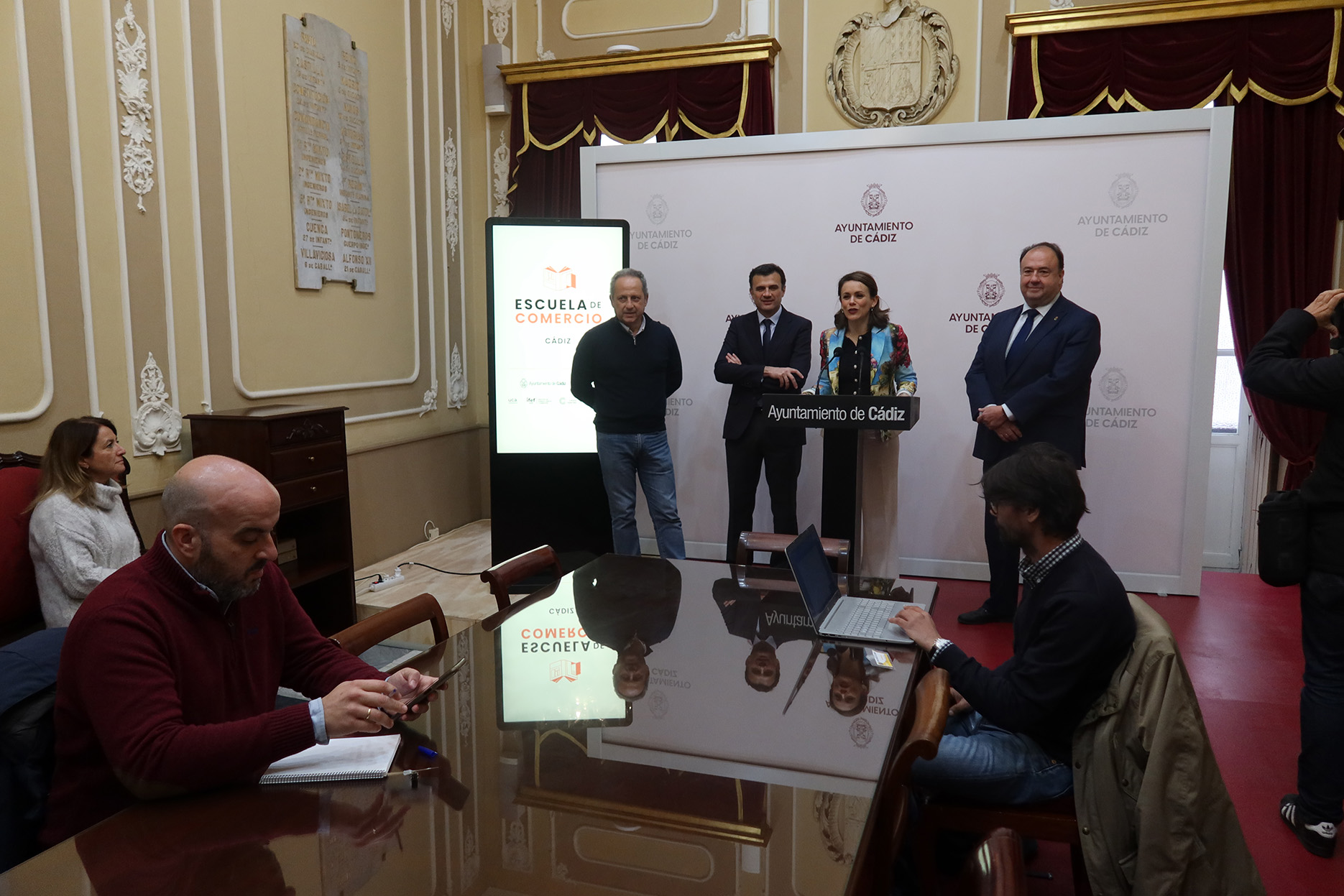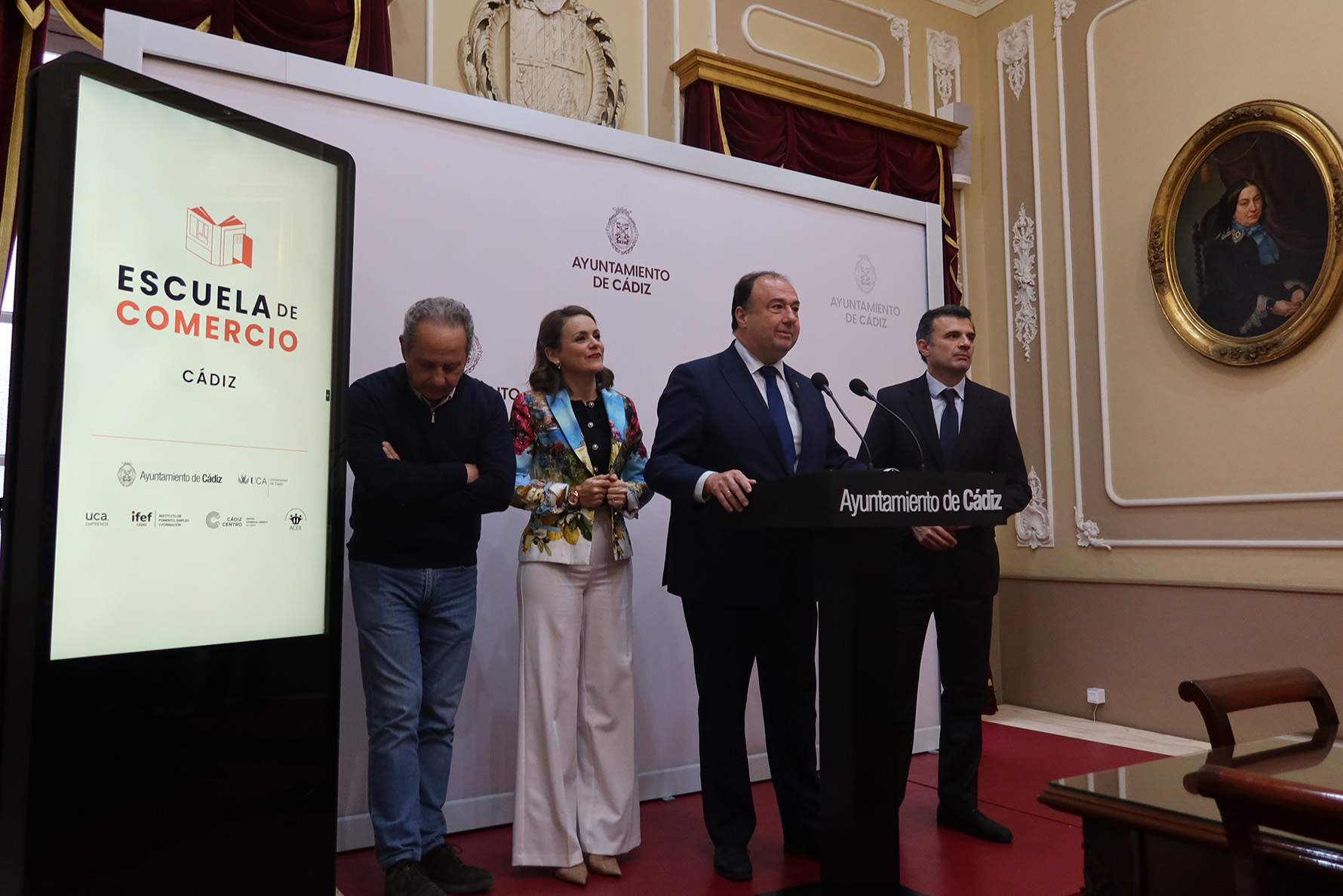 El alcalde de la ciudad, Bruno García, y el rector de la Universidad de Cádiz, Casimiro Mantell, han presentado la Escuela de Comercio de Cádiz, una iniciativa centrada en la formación que se pone en marcha desde el Instituto de Fomento, Empleo y Formación (IFEF) y el servicio UCA Emprende con la colaboración de la asociación de comerciantes Cádiz Centro Comercial Abierto y la Asociación de Comerciantes de Extramuros (ACEX).