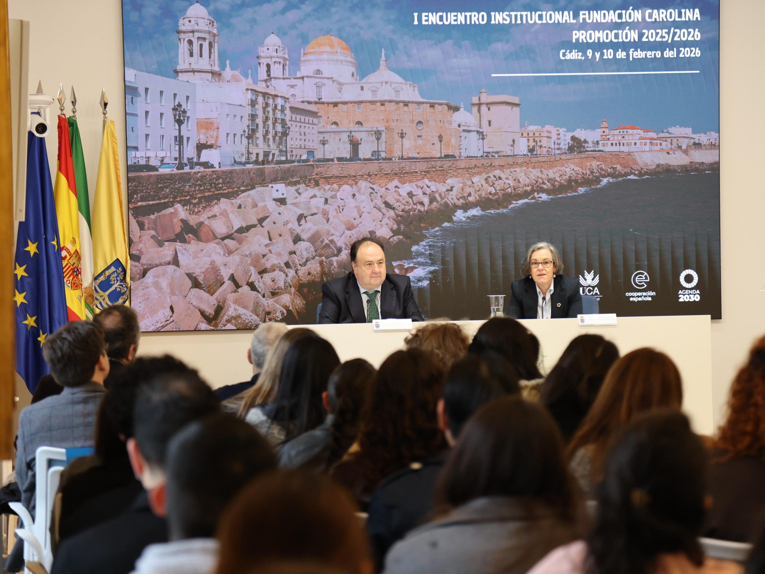 La Universidad de Cádiz ha acogido este martes en el Rectorado uno de los actos del Encuentro Regional de la Fundación Carolina correspondiente a la promoción 2025/2026, una cita que ha reunido en Cádiz a 52 becarios y becarias iberoamericanos que cursan estudios de posgrado, doctorado y estancias postdoctorales en universidades andaluzas. La visita institucional ha servido para poner en valor el papel de la universidad pública como espacio de cooperación académica, intercambio cultural y compromiso con el desarrollo sostenible.