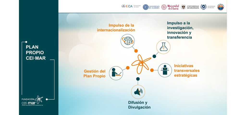 El Campus de Excelencia Internacional del Mar (CEI·MAR) define las acciones de su Plan Propio, que inaugurará con la inminente publicación de sus nuevas convocatorias de movilidad internacional. Estructurado en cinco ejes bien diferenciados, este busca cumplir con el compromiso de la entidad con la transferencia del conocimiento, la innovación e investigación científica y la internacionalización.