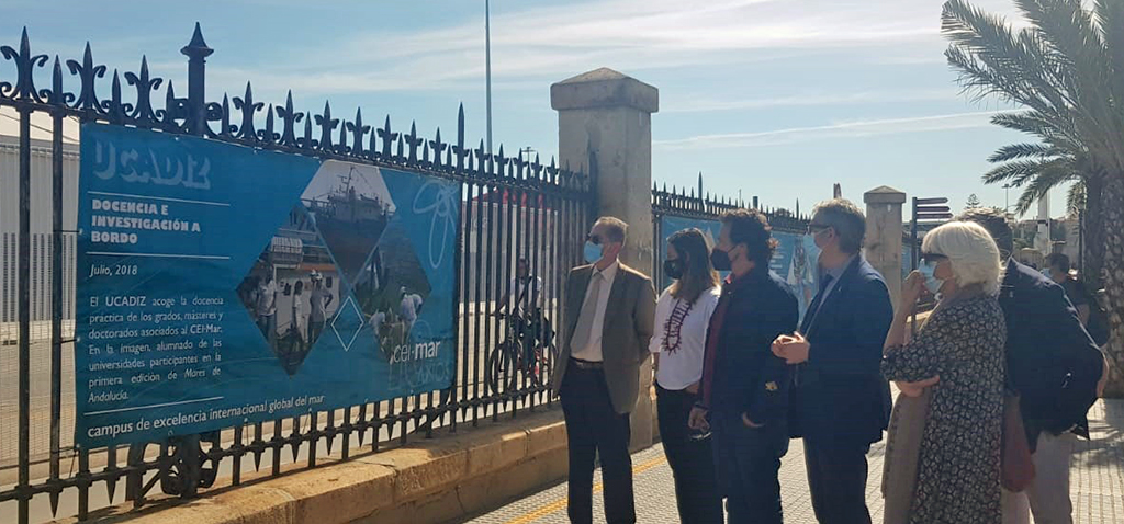 El rector de la Universidad de Cádiz, Francisco Piniella, junto al alcalde de Cádiz, José María González, y la presidenta de la Autoridad Portuaria Bahía de Cádiz, Teófila Martínez, en compañía de la vicerrectora de Política Científica y Tecnológica, Mª Jesús Mosquera, y del coordinador General de CEI·Mar, Juan José Muñoz, ha inaugurado en la mañana de hoy la muestra CEI.Mar 10 años: una travesía sobresaliente, que recoge los hitos más importantes de la historia del Campus de Excelencia Internacional Global del Mar (CEI·Mar). Se trata de 20 paneles ilustrados que estarán expuestos en la verja del muelle comercial del puerto de Cádiz hasta el próximo mes de diciembre y está previsto que gire por las distintas universidades que integran el Campus. La muestra sirve para conmemorar el X Aniversario de la consecución, en octubre de 2011 y tras superar un exigente proceso de evaluación ante un tribunal internacional, del sello de excelencia para esta agregación científico-técnica surgida en torno a los estudios marinos y marítimos.