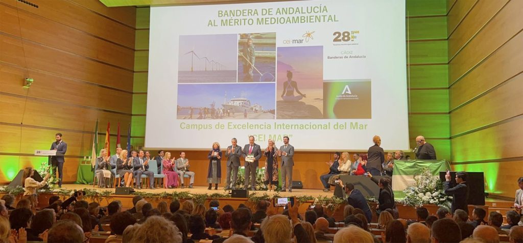 De este modo, la Bandera de Andalucía al Mérito Medioambiental ha sido otorgada al CEI·Mar. El Gobierno autonómico ha resaltado que este Campus de Excelencia Internacional Global del Mar (coordinado por la UCA) “es una agregación estratégica de universidades, centros de investigación y empresas de Andalucía, sur de Portugal y norte de Marruecos” siendo, la Universidad de Cádiz una de las universidades españolas que lo impulsa y, constituyendo, de esta forma, “una de las mayores agregaciones científicas y empresariales española y del mundo en el ámbito marino-marítimo”. El rector de la UCA, Casimiro Mantell, ha recogido esta distinción y ha agradecido a la Junta de Andalucía su apoyo y reconocimiento a la labor de CEI·Mar y del profesor Girón.