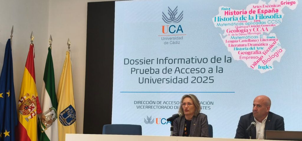 La Universidad de Cádiz ha dado a conocer este lunes la planificación y los principales datos relativos a la organización de la Prueba de Acceso a la Universidad (PAU) 2025, que se celebrará los días 3, 4 y 5 de junio en sus cuatro campus universitarios. El acto informativo ha tenido lugar en la Galería de Rectores del edificio del Rectorado, con la participación de la vicerrectora de Estudiantes, Nuria Campos, y el director general de Acceso y Orientación, Alejandro Pérez.