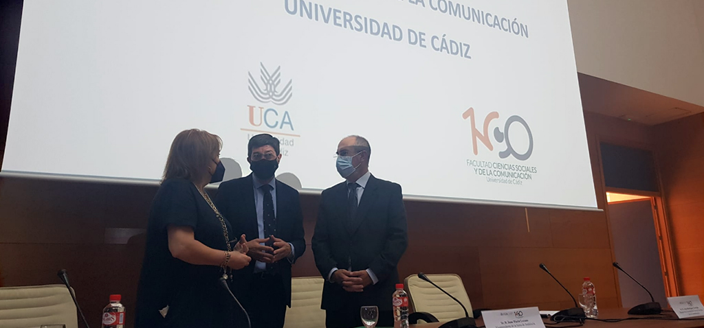 Para el decano de Ciencias Sociales y de la Comunicación, que ha realizado un breve resumen del centenario de los estudios superiores en Jerez, “la celebración de las efemérides nos da la oportunidad de hacer memoria sobre los acontecimientos que han ido pasando a lo largo de los años, y poner en valor los logros que entre todos hemos conseguido para que hoy estemos en esta Facultad y en estas instalaciones”. Por otra parte, ha precisado que “los títulos que se imparten relacionados con el ámbito del marketing, comunicación, turismo y la administración pública representan una adaptación de la oferta formativa del centro a las necesidades de la sociedad en la que nos encontramos”, subrayando, finalmente, la importante labor que se realiza para incrementar y consolidar la plantilla del profesorado, así como en el ámbito de la transferencia con las empresas, la colaboración con las instituciones y la movilidad internacional del alumnado.