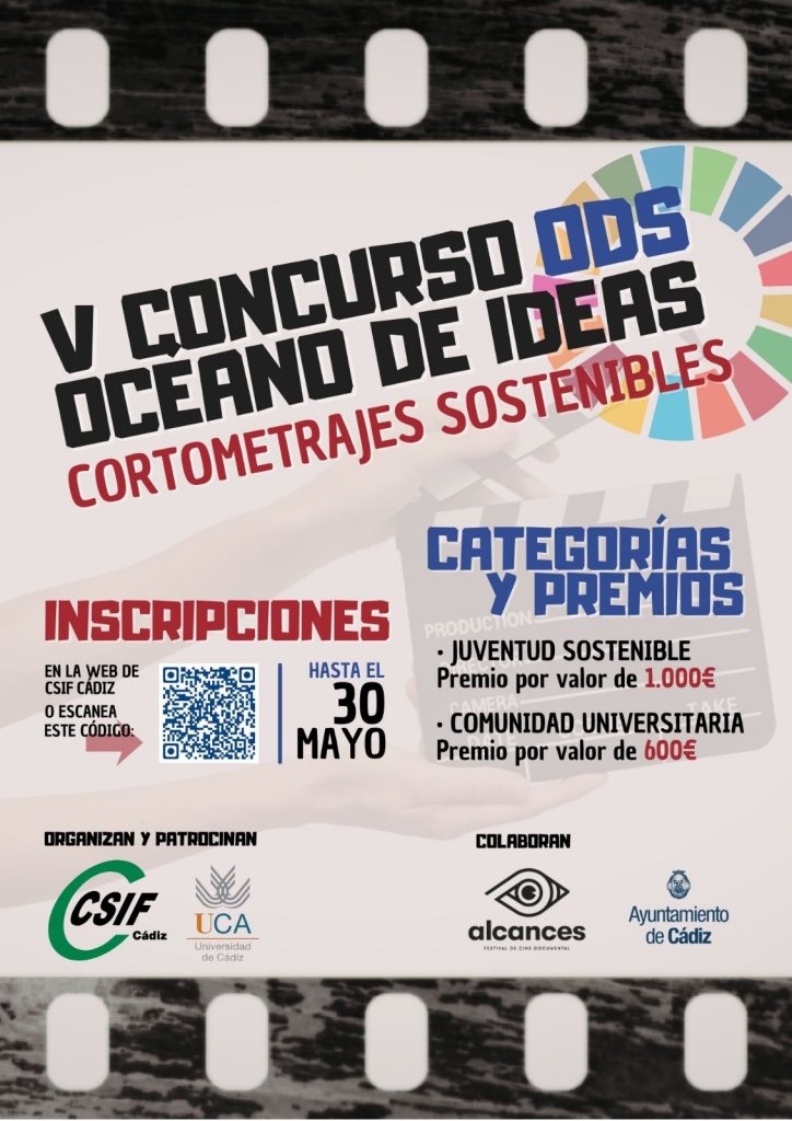 La Universidad de Cádiz, a través de la Oficina de Cooperación Internacional para el Desarrollo (OCID), ha convocado el Premio sección comunidad universitaria del V Concurso ‘Océano de Ideas ODS’ de cortometrajes sostenibles 2026, una iniciativa que se desarrolla en colaboración con la Secretaría de Responsabilidad Social de CSIF Cádiz. Este certamen, que alcanza su quinta edición, se consolida como un espacio de participación y sensibilización en torno a los Objetivos de Desarrollo Sostenible (ODS) establecidos por Naciones Unidas.