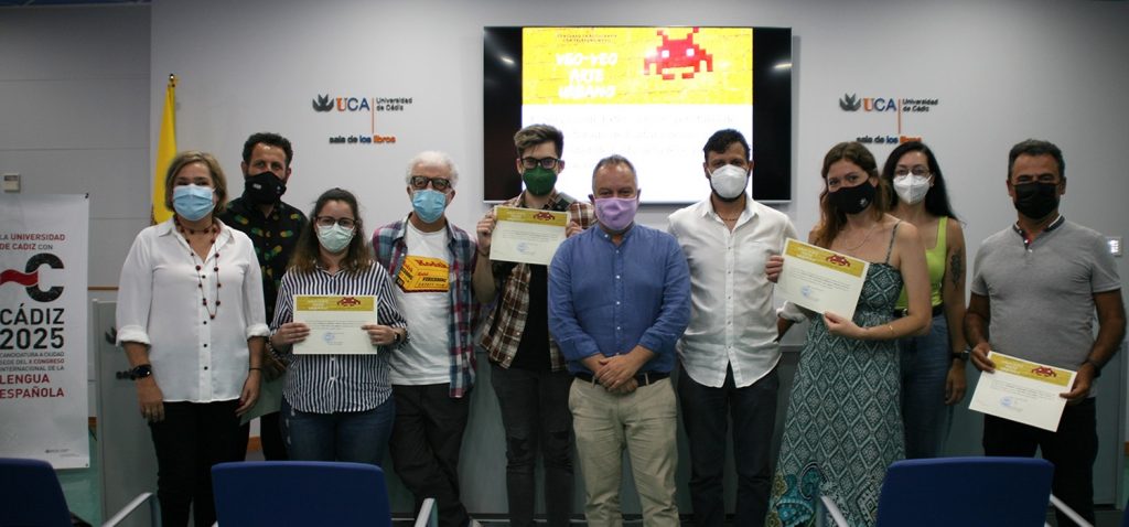 El Servicio de Extensión Universitaria del vicerrectorado de Cultura de la Universidad de Cádiz ha celebrado la entrega de los premios del concurso de fotografía VEO-VEO: Arte Urbano, una convocatoria cuyo principal objetivo es premiar las mejores imágenes tomadas con la cámara del teléfono móvil, mostrando cualquier manifestación en torno al arte urbano. El vicerrector de Cultura de la Universidad de Cádiz, José Mª Pérez Monguió, ha presidido el acto en la sala de Los Libros del edificio Andrés Segovia de Cádiz.