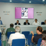 El rector de la Universidad de Cádiz, Francisco Piniella, el alcalde de Cádiz, José María González, el vicepresidente de la Fundación Provincial de Cultura de la Diputación de Cádiz, Antonio González Mellado, y el director de la Cátedra del Carnaval de la UCA, Alberto Ramos, han participado hoy, en la sala de Los Libros del edificio Andrés Segovia, en la presentación del 23º Congreso Internacional del Carnaval El Carnaval es la calle.