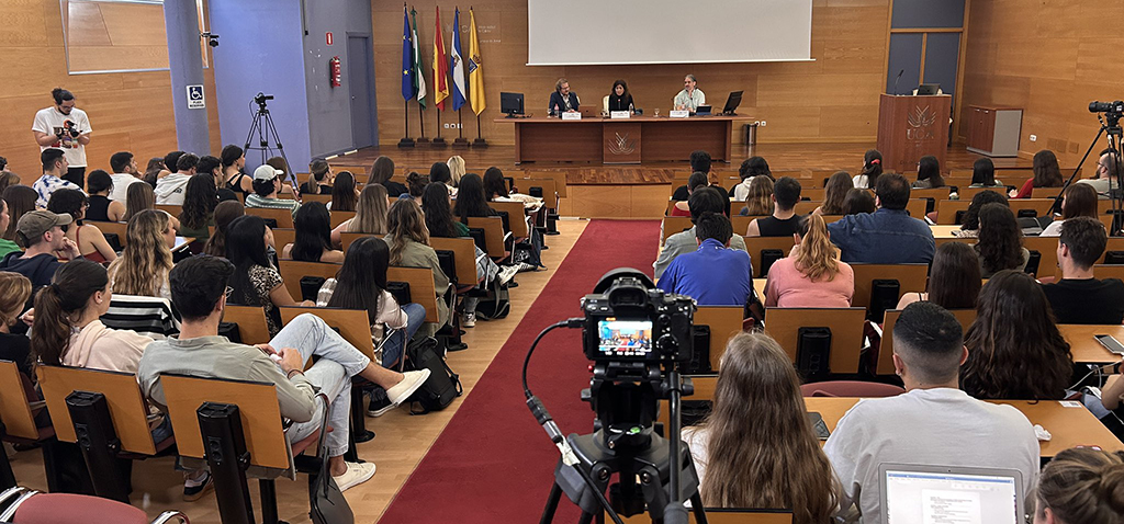 La Facultad de Ciencias Sociales y de la Comunicación de la Universidad de Cádiz, desde el grupo de investigación ‘Comunicación estratégica e influencia en la sociedad digital’, organiza junto a la Asociación científica Icono 14 el XI Congreso Internacional de Investigadores Audiovisuales en el Campus de Jerez. La vicerrectora de Investigación y Transferencia de la UCA, Mª Jesús Ortega, en compañía del decano del centro académico, José Antonio López, el presidente de Icono14, Francisco García, y el director del Congreso, Javier Sierra, han presidido hoy el acto inaugural en el salón de Actos del edificio de Despachos y Seminarios.