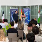 Por su parte, la vicerrectora de Internacionalización, Marcela Iglesias, ha subrayado que “la Universidad de Cádiz contribuye activamente a construir Europa a través de la movilidad, la cooperación académica y los proyectos internacionales”. Ha destacado especialmente el compromiso de la UCA con el programa Erasmus+, que ha evolucionado hasta convertirse en un instrumento esencial para la formación y el desarrollo de toda la comunidad universitaria: “Hoy contamos con más de 3.000 plazas de movilidad y 1.400 convenios activos con universidades de todo el mundo”. Iglesias ha puesto el acento en la evolución del programa, que no se centra sólo en el estudio, y que permite participar en voluntariado, hacer prácticas en empresas, cooperación al desarrollo, intercambios deportivos.