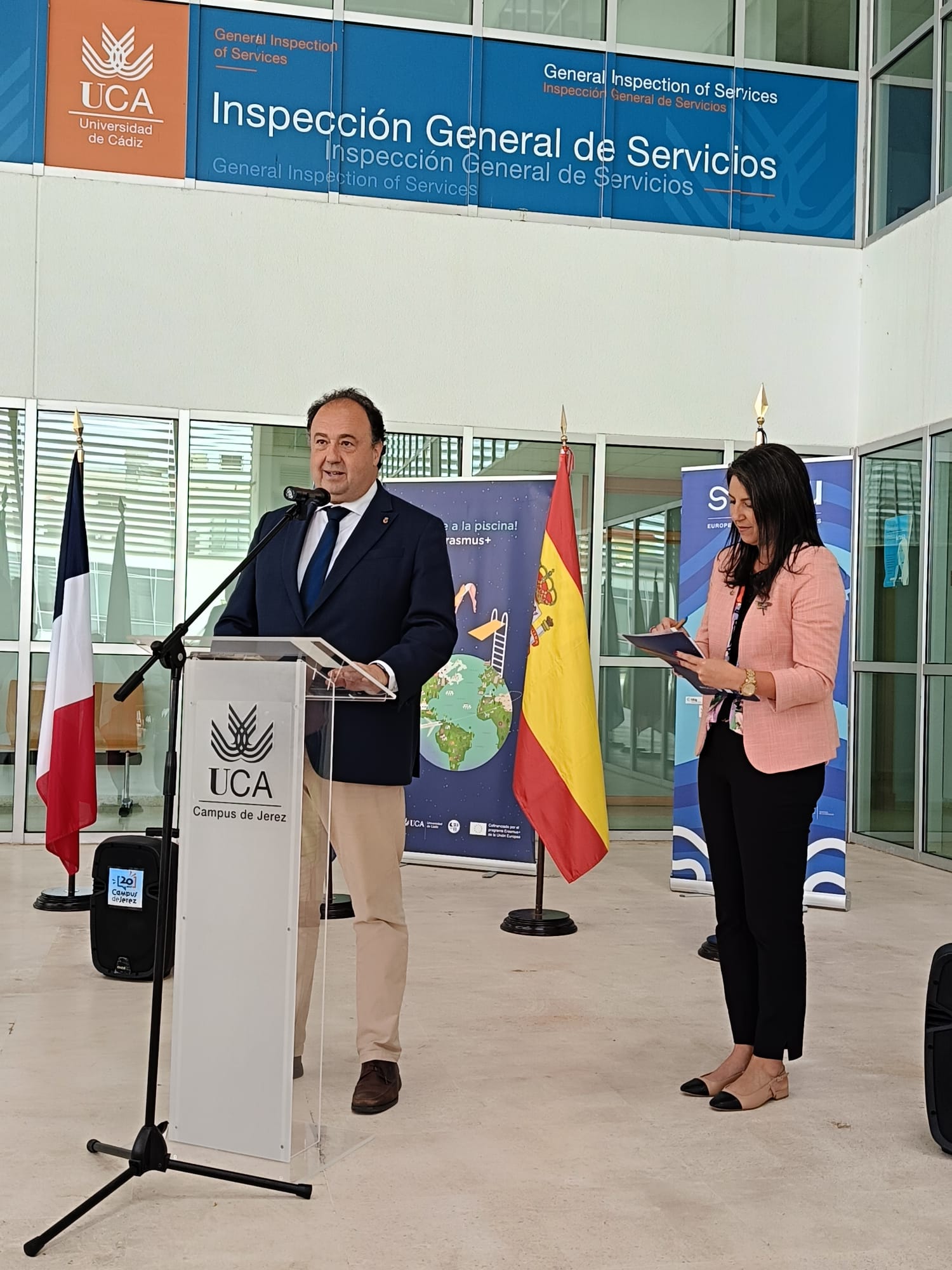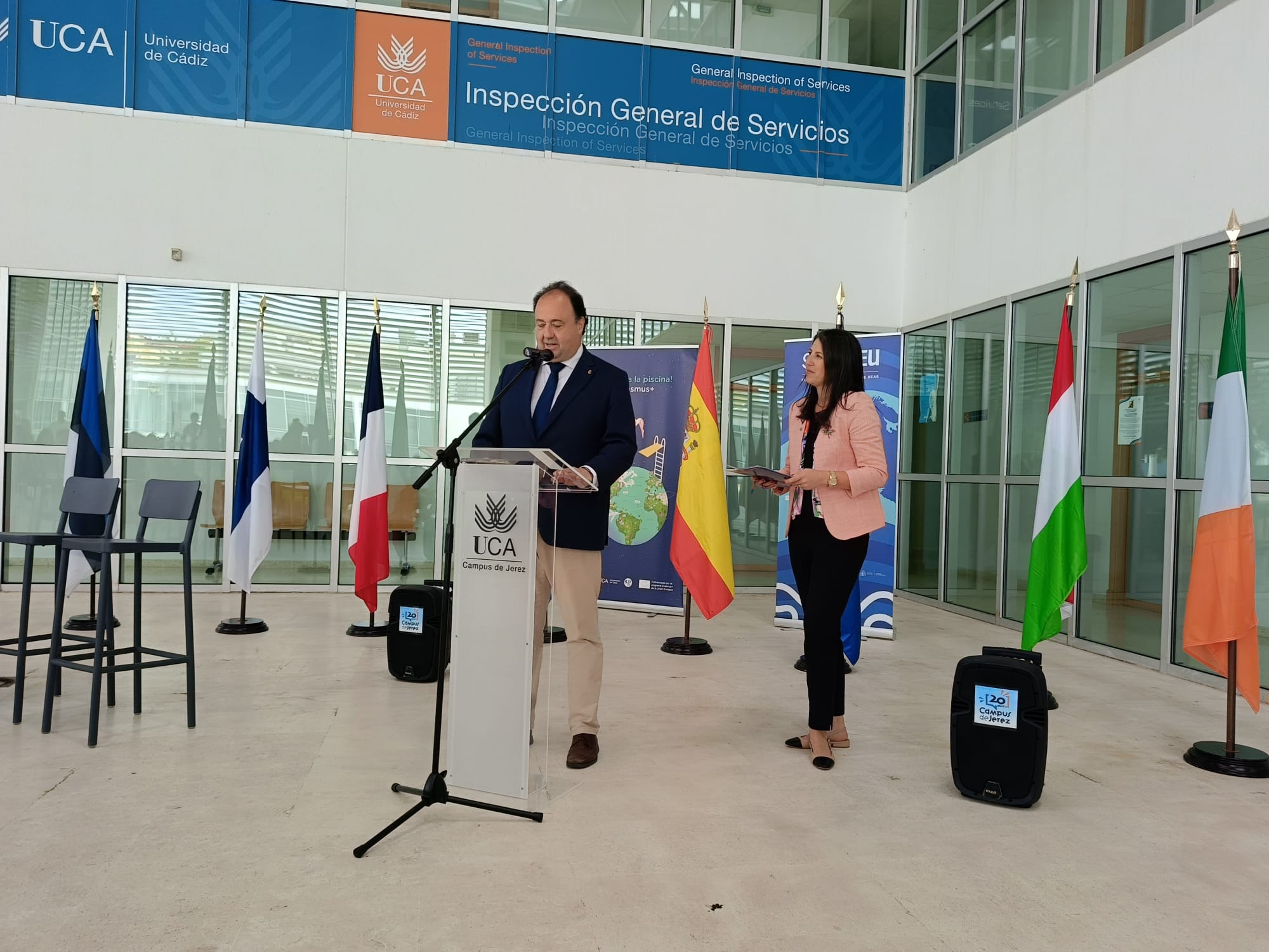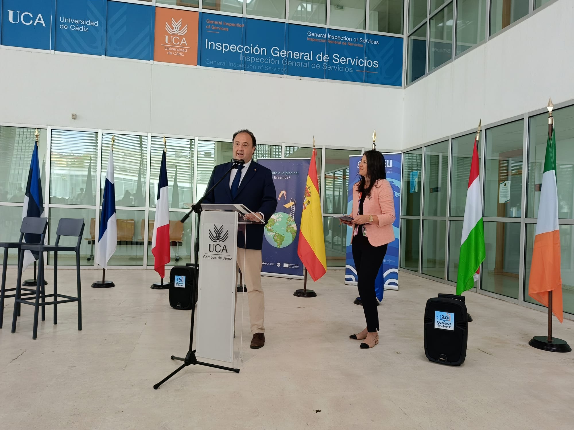 La participación de la Universidad de Cádiz en el conjunto académico europeo es constante y activa. El propio rector ha comentado en el acto en el Campus de Jerez que acababa de llegar de unas jornadas celebradas en Split (Croacia), cuya universidad forma parte del consorcio SEA-EU, liderado por la Universidad de Cádiz. Casimiro Mantell ha defendido los valores europeos como un componente esencial que debe acompañar a la excelencia académica.