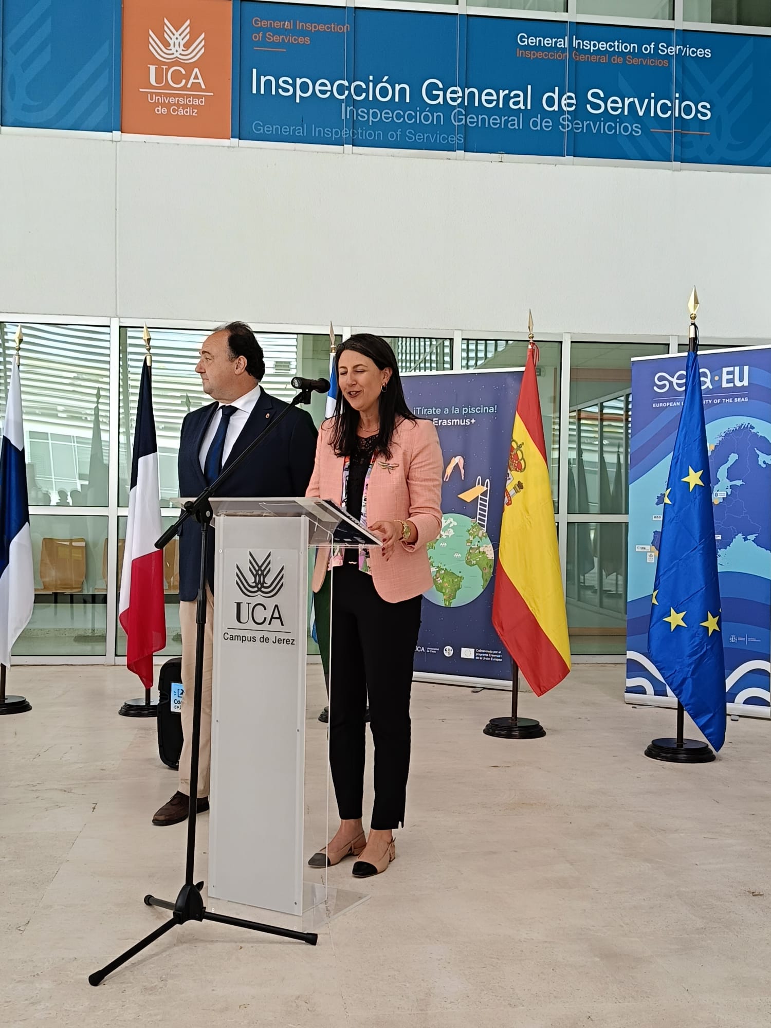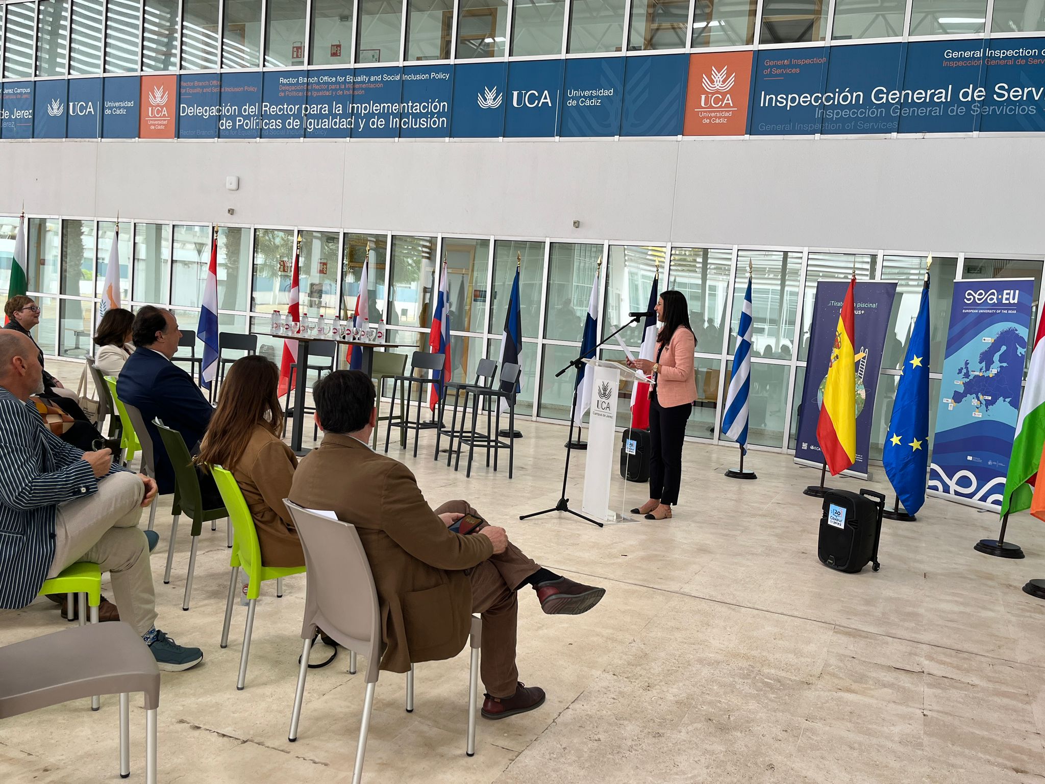 Asimismo, Iglesias ha valorado que la UCA coordine actualmente una de las Alianzas Europeas universitarias más activas, la Sea-EU, integrada por nueve universidades costeras: “Desde esta red estamos diseñando un campus interuniversitario europeo y en el marco del cual lanzaremos cuatro programas conjuntos el próximo curso, un grado, dos másters y un doctorado”. La vicerrectora ha insistido en la idea de que, además del plano académico, estos programas europeos se realizan “buscando la generación y transferencia de conocimiento y tecnología entre la universidad y la sociedad civil, con el claro objetivo de contribuir a un desarrollo humano sostenible, al desarrollo local, al progreso en las ciudades donde vivimos”.