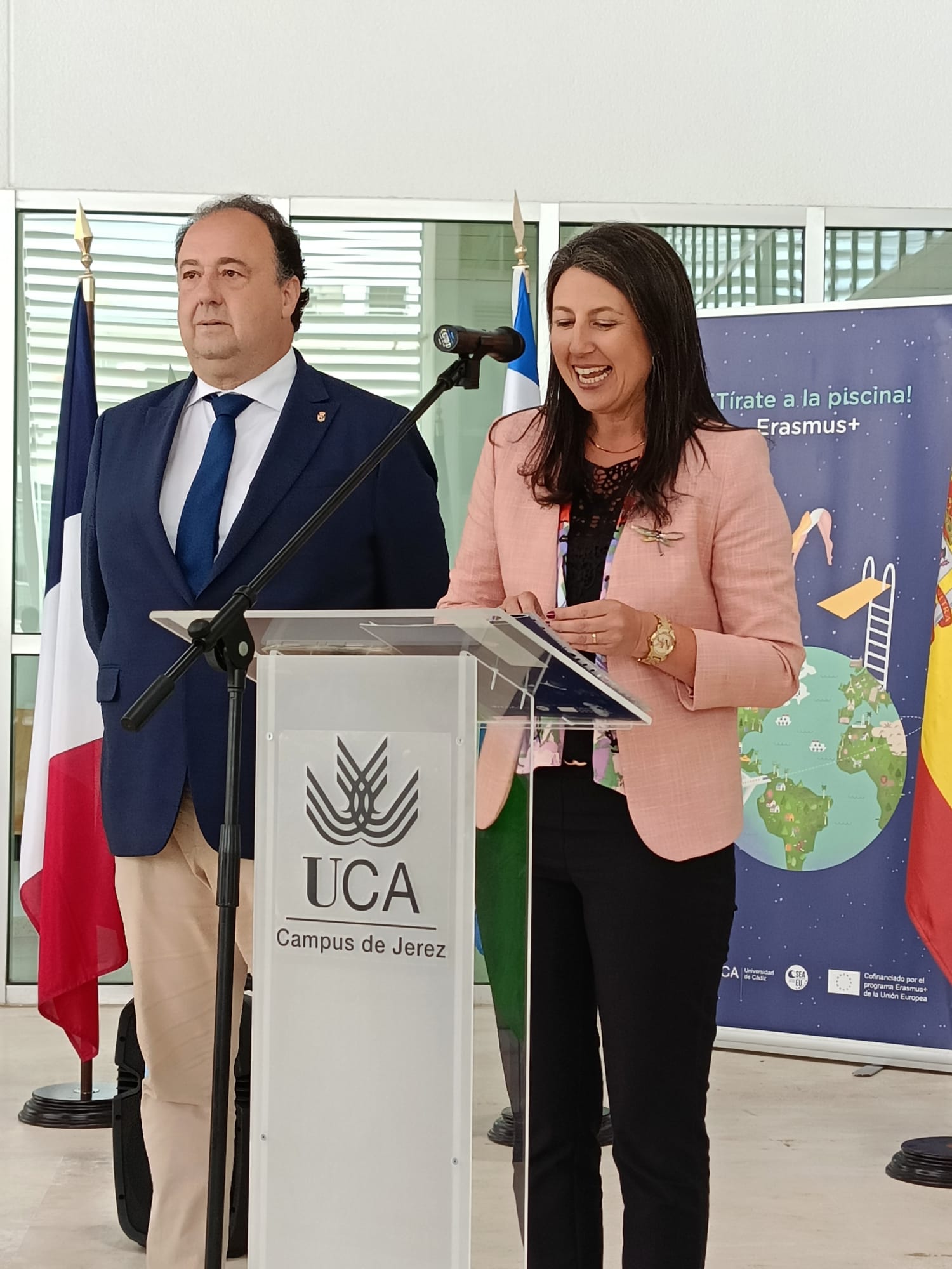 Por su parte, la vicerrectora de Internacionalización, Marcela Iglesias, ha subrayado que “la Universidad de Cádiz contribuye activamente a construir Europa a través de la movilidad, la cooperación académica y los proyectos internacionales”. Ha destacado especialmente el compromiso de la UCA con el programa Erasmus+, que ha evolucionado hasta convertirse en un instrumento esencial para la formación y el desarrollo de toda la comunidad universitaria: “Hoy contamos con más de 3.000 plazas de movilidad y 1.400 convenios activos con universidades de todo el mundo”. Iglesias ha puesto el acento en la evolución del programa, que no se centra sólo en el estudio, y que permite participar en voluntariado, hacer prácticas en empresas, cooperación al desarrollo, intercambios deportivos.