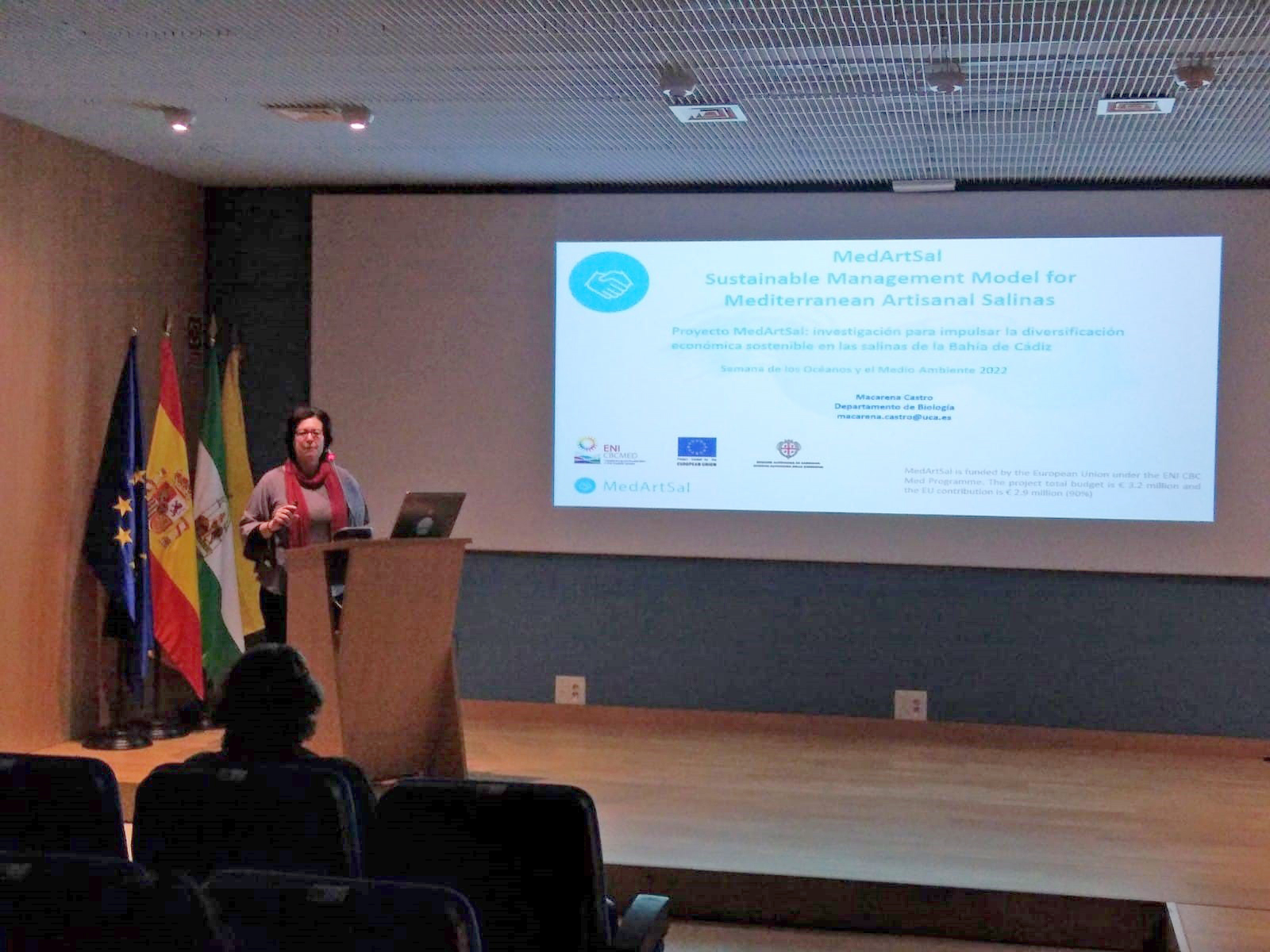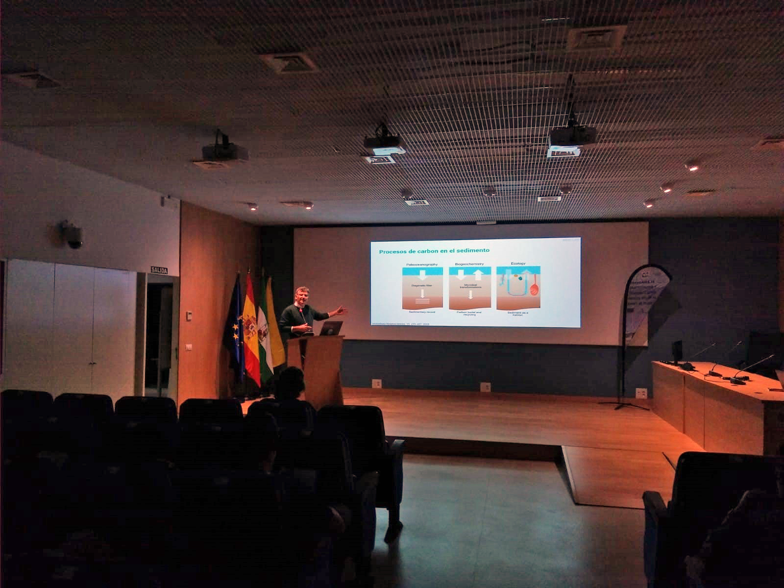 El programa ha continuado con la intervención de la profesora titular de Biología, Gloria Peralta, para hablar de Las marismas naturales en el Parque Natural Bahía de Cádiz, del profesor titular de Ecología, Sokratis Papaspyrou, quien acercará El impacto del cambio climático en la ecología microbiana y biogeoquímica de las zonas intermareales, los investigadores Ramón y Cajal y FPU de Botánica, Juan Pedro Varo y Lucia Acevedo, explicarán El papel de los animales frugívoros y la dispersión de semillas en la biodiversidad de paisajes humanizados o la docente de Zoología, Macarena Castro, desde el proyecto MedArtSal detallará La diversificación económica sostenible en las salinas de la Bahía de Cádiz. Asimismo, de La importancia de las series temporales de datos para la evaluación de la calidad ambiental y de la incidencia del cambio climático en espacios protegidos: las estaciones de vigilancia ambiental del instituto INMAR en el Parque Natural Bahía de Cádiz hablarán el catedrático de Biología, Ignacio González Gordillo, y el doctorando, Rubén Ríos, y el profesor de Física Aplicada, Alfredo Izquierdo, trasladará la información del proyecto de Observatorio Costero Ambiental del Río San Pedro.
