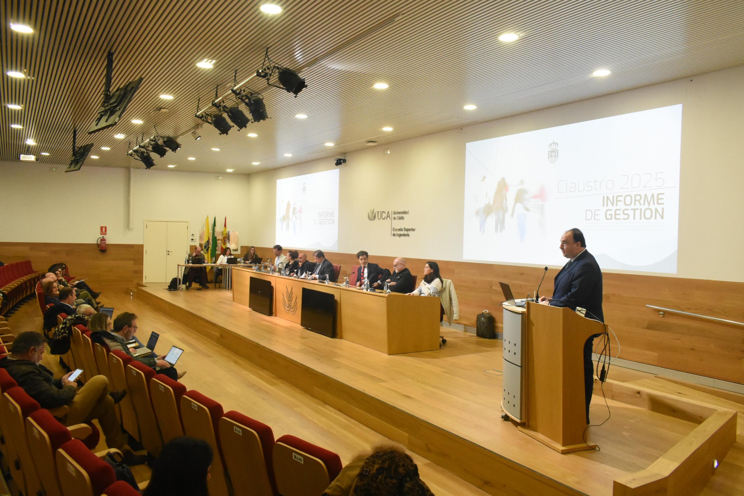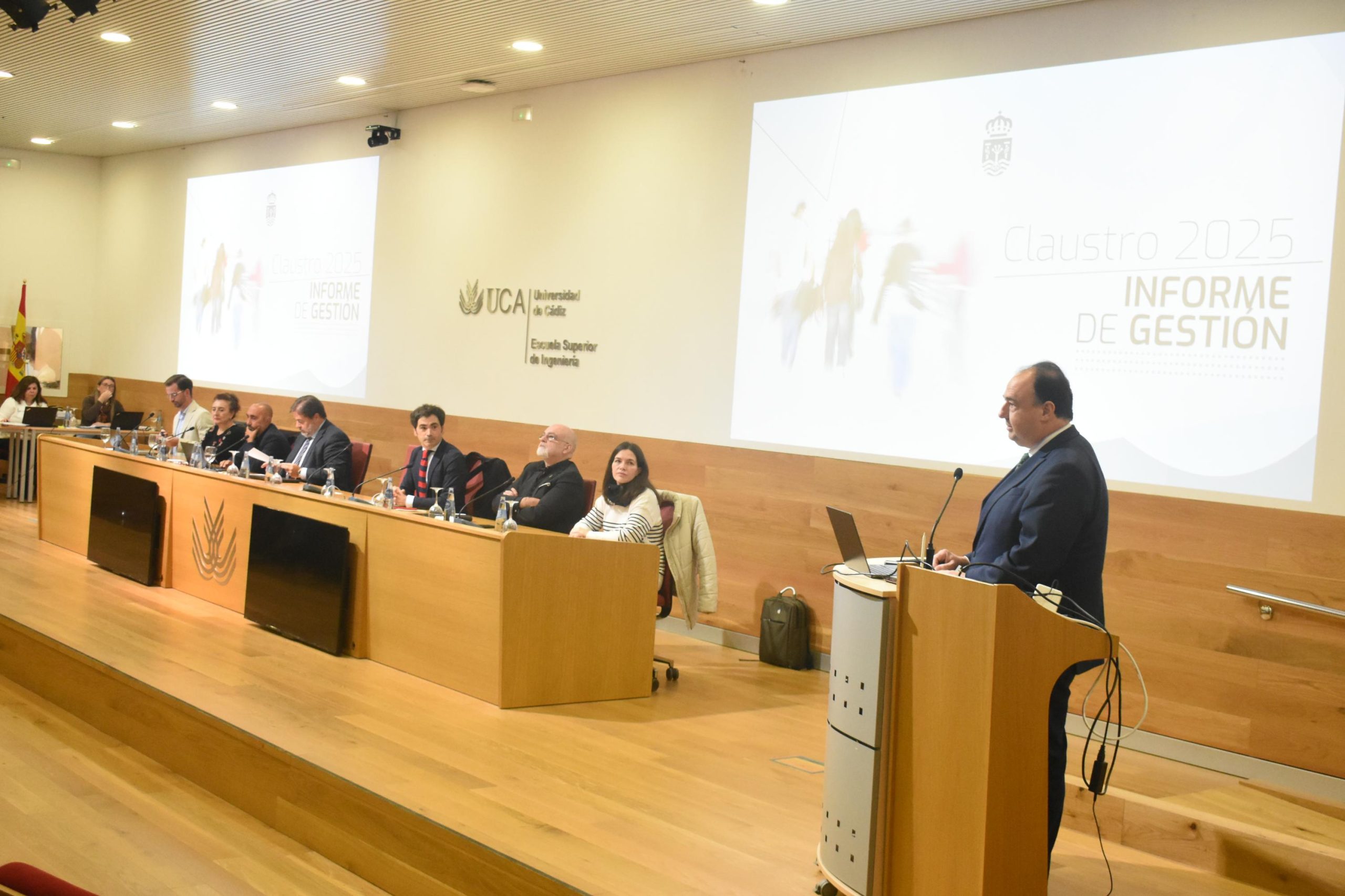 El Claustro de la Universidad de Cádiz aprobó ayer el Informe de Gestión del Rector 2025, presentado por el rector Casimiro Mantell, que ha quedado respaldado por la mayoría de los claustrales tras su exposición y debate, con 104 votos a favor y dos en contra.