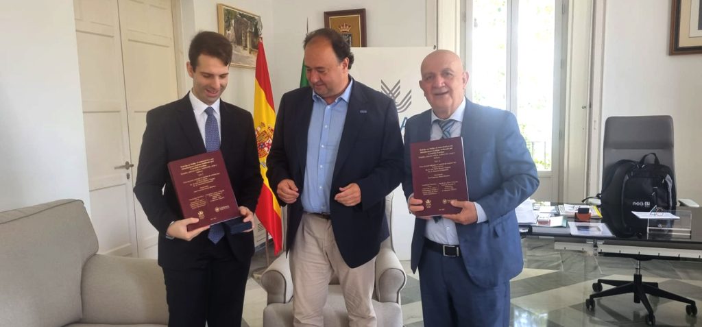 El Dr. Juan Francisco Reyes Montero, egresado y miembro del grupo de investigación interuniversitario ‘Elio Antonio de Nebrija’ de la Universidad de Cádiz y, en la actualidad profesor Ayudante Doctor de la Universidad de Málaga, ha ganado cuatro premios, uno de carácter internacional, dos nacionales, y el Premio Extraordinario de la UCA con su tesis doctoral Nebrija en Italia: el comentario a sus “Introductiones Latinae” realizado por Cristóbal Escobar. Estudio, edición crítica, traducción, notas e índices, defendida en 2022. El rector de la UCA, Casimiro Mantell, lo ha recibido en el Rectorado para darle personalmente la enhorabuena en compañía de su director de tesis, José María Maestre, e imponerle el galardón de Alumno Distinguido de la institución académica gaditana.