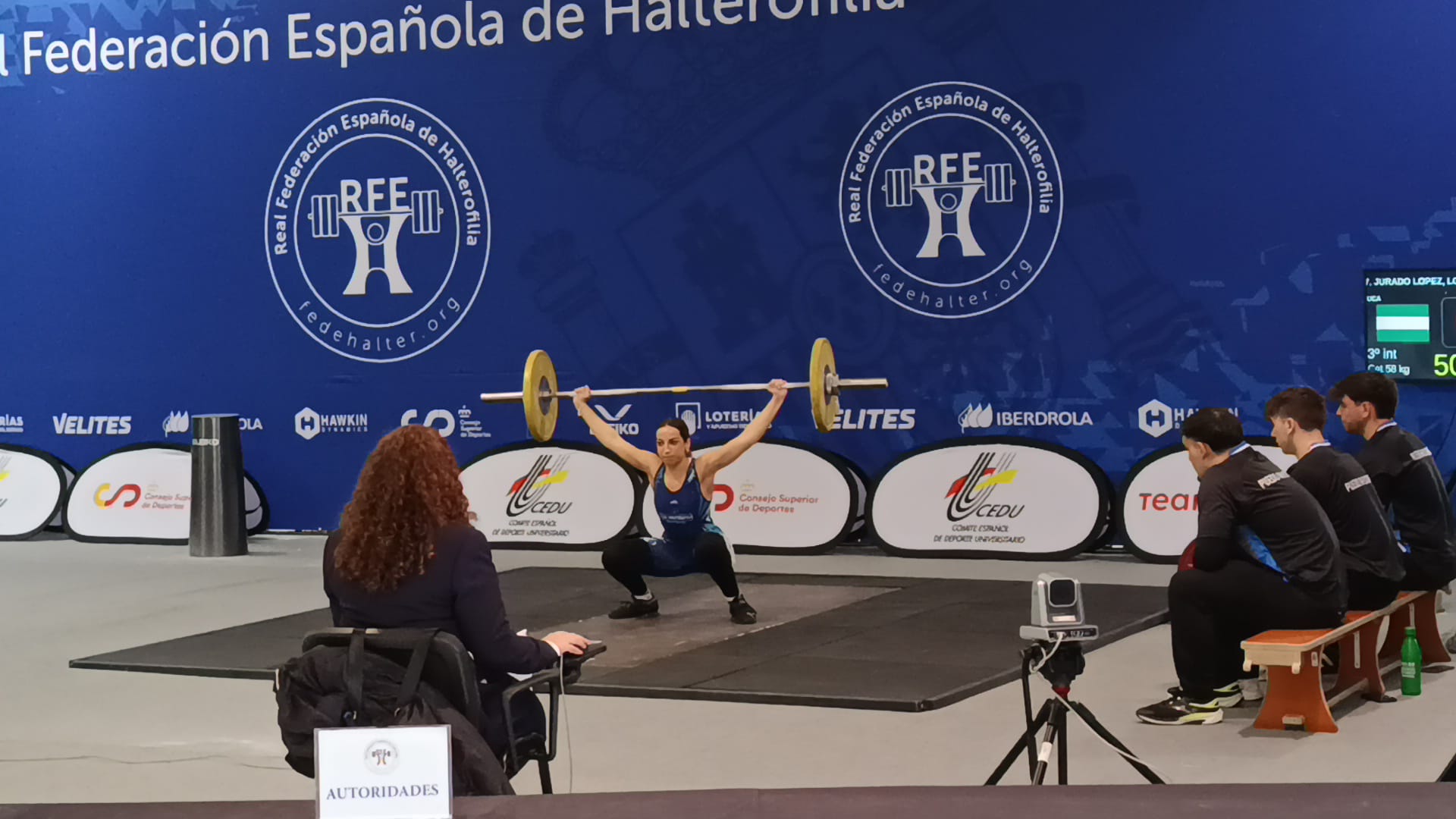 En la categoría femenina de -58 kg, Lola Jurado firmó una destacada actuación en su primera participación en un CEU. La deportista logró levantar 50 kg en la modalidad de arrancada y 55 kg en dos tiempos, alcanzando un total olímpico de 105 kg, resultado que le permitió finalizar en una meritoria séptima posición.